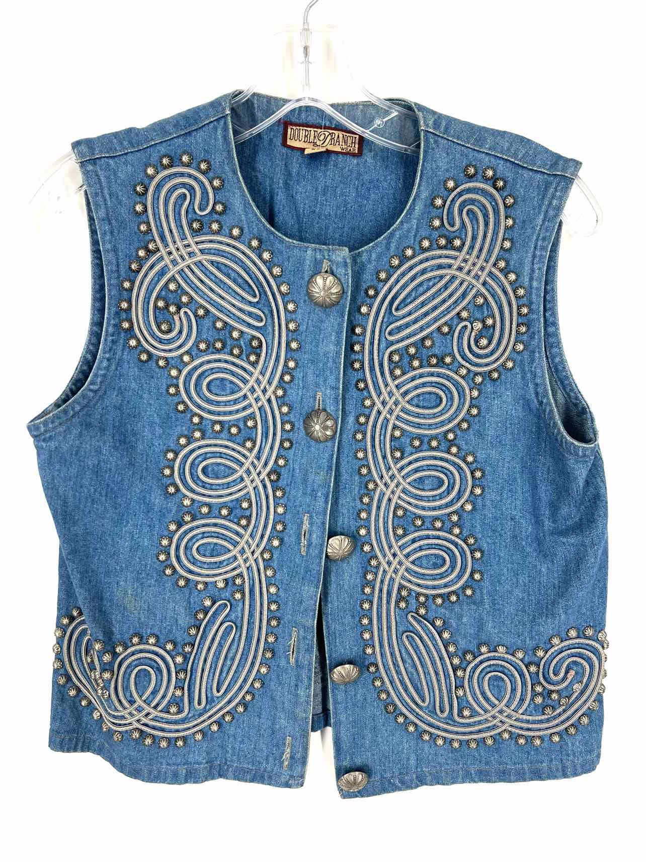 Double D Ranch Size XS Denim/Silver Soutache Conchos AS IS Designer Vest