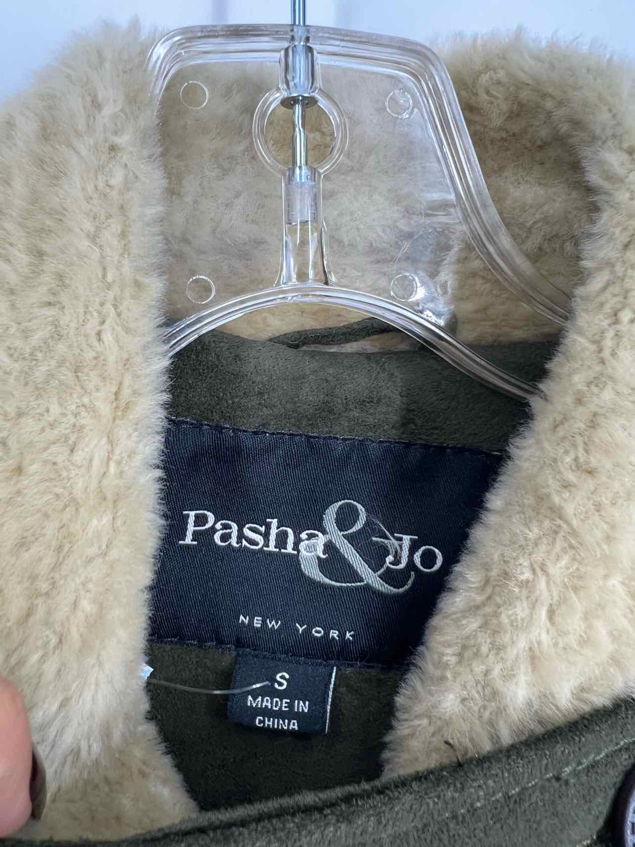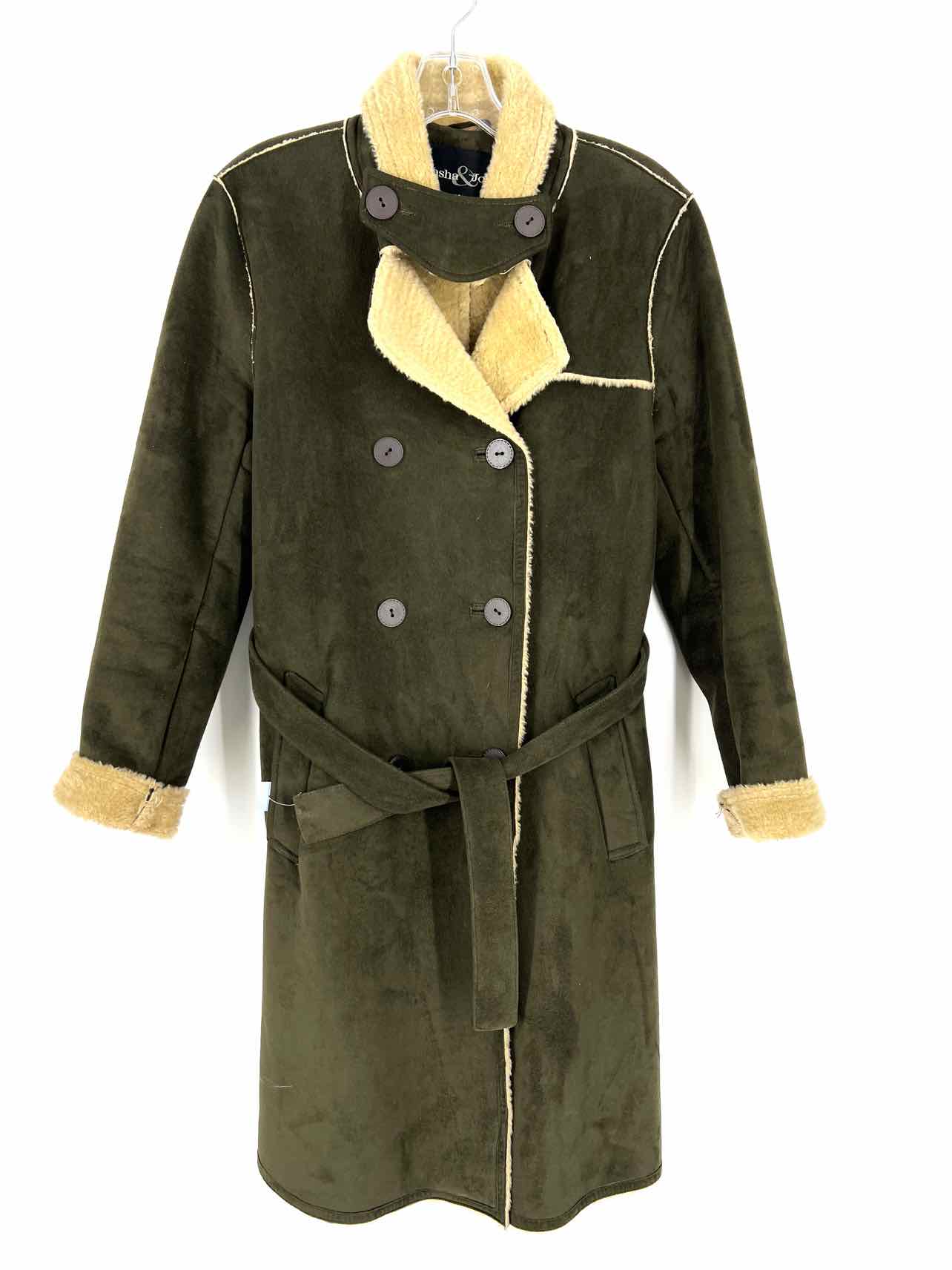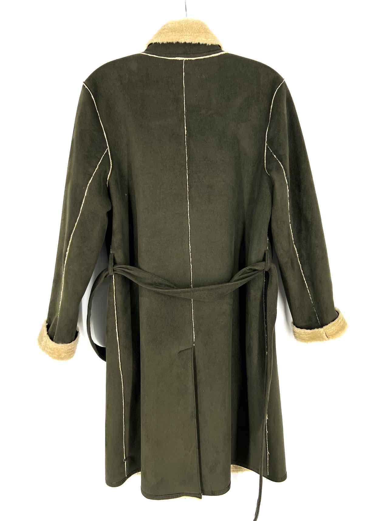 Pasha & Jo Size S Dk Green/Beige Faux Fur Faux Suede Belted Coats Coat