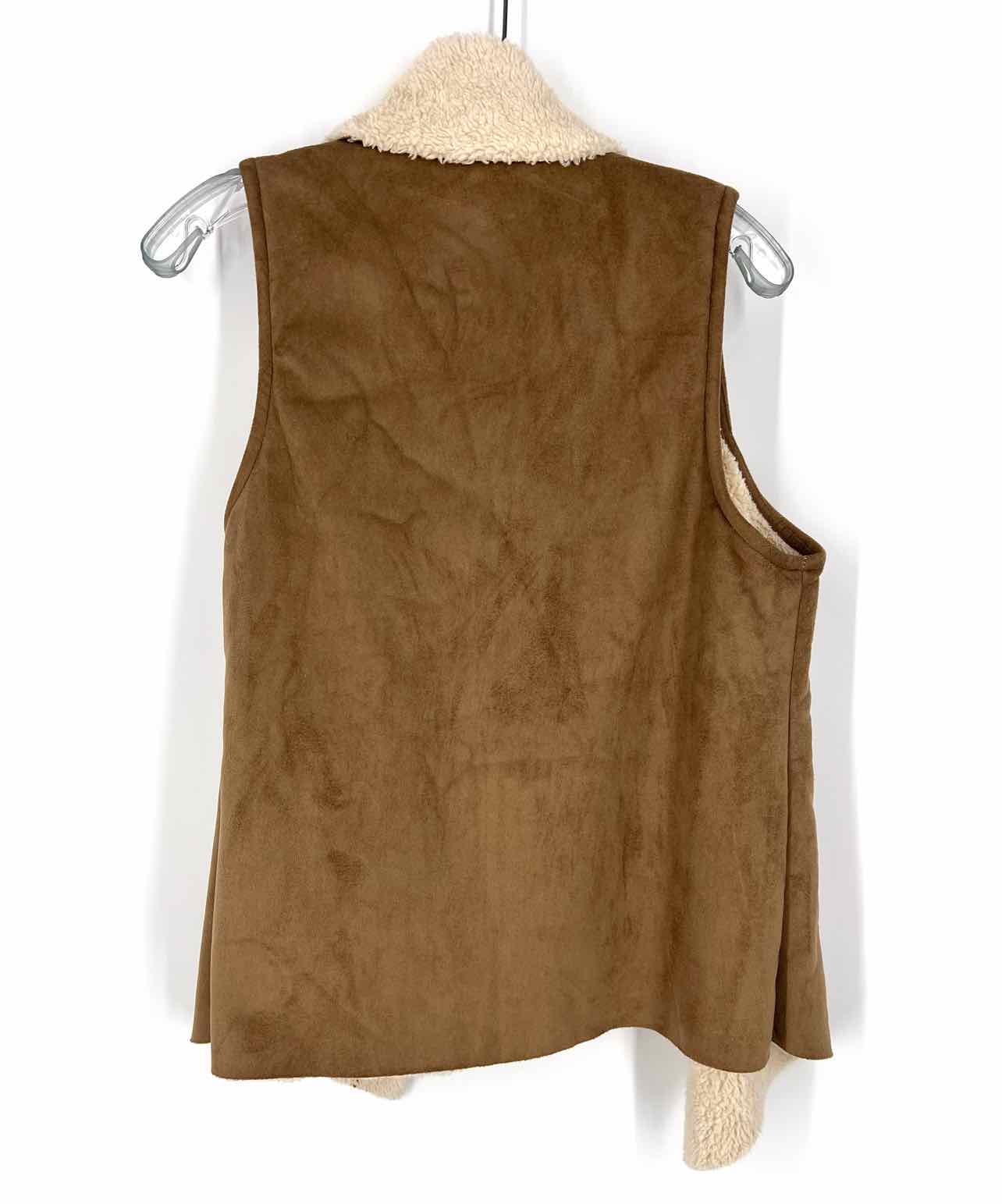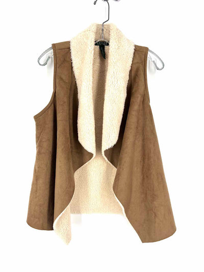Lauren Ralph Lauren Size M Brown/Cream Faux Suede Sherpa Vests Vest