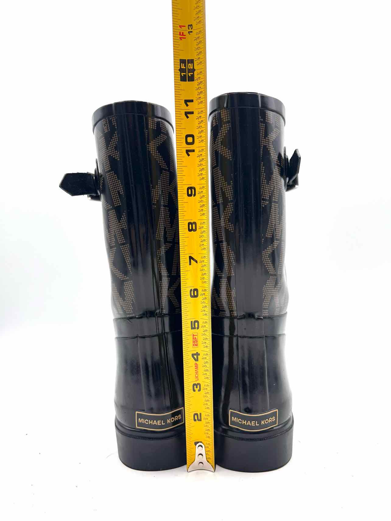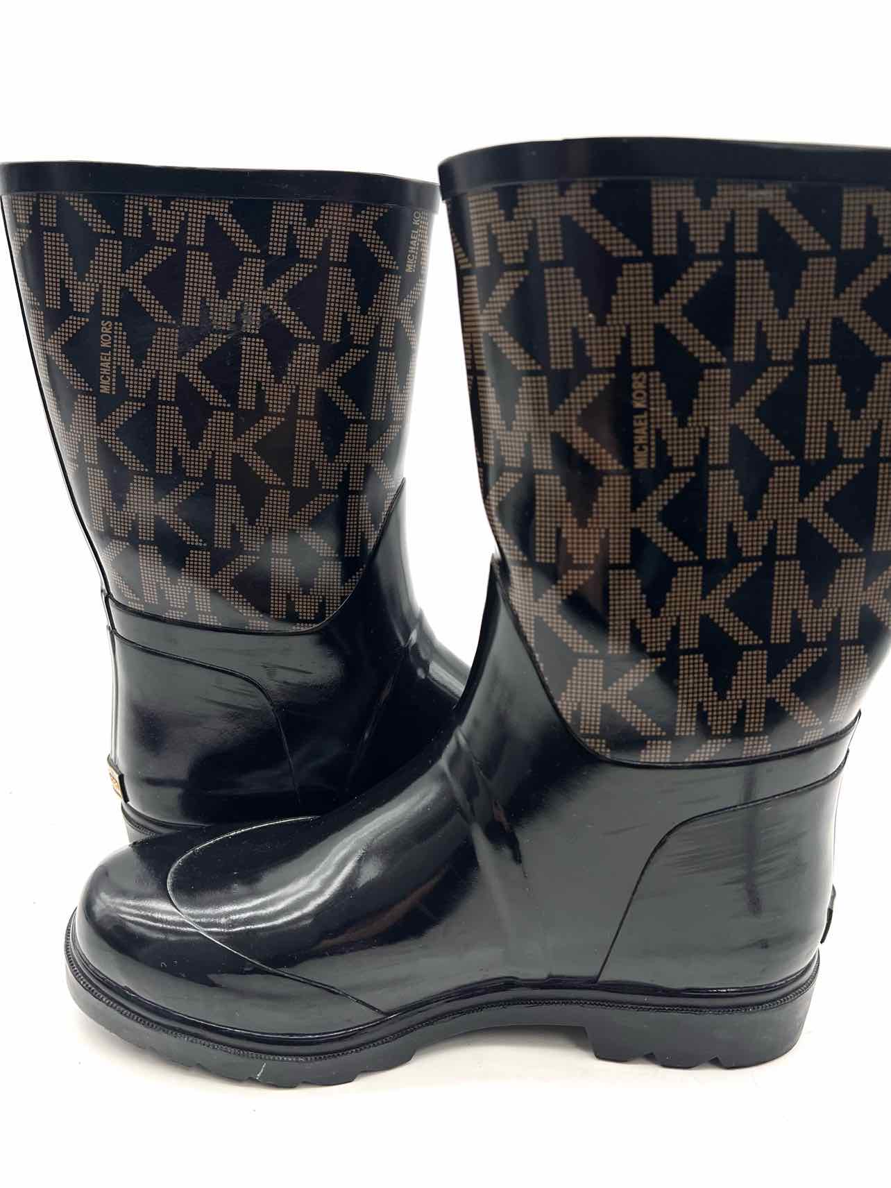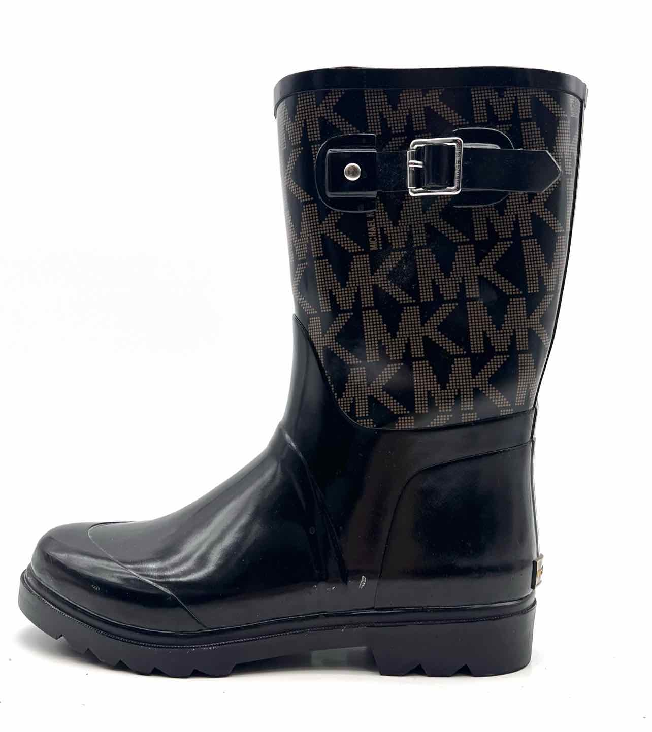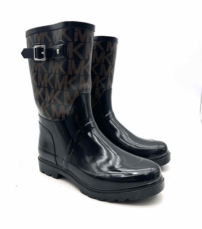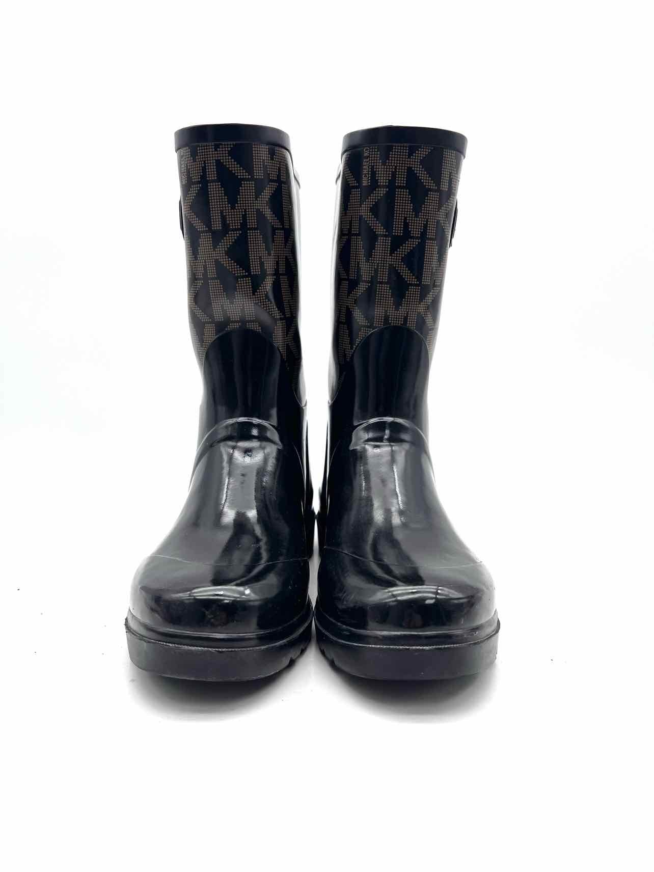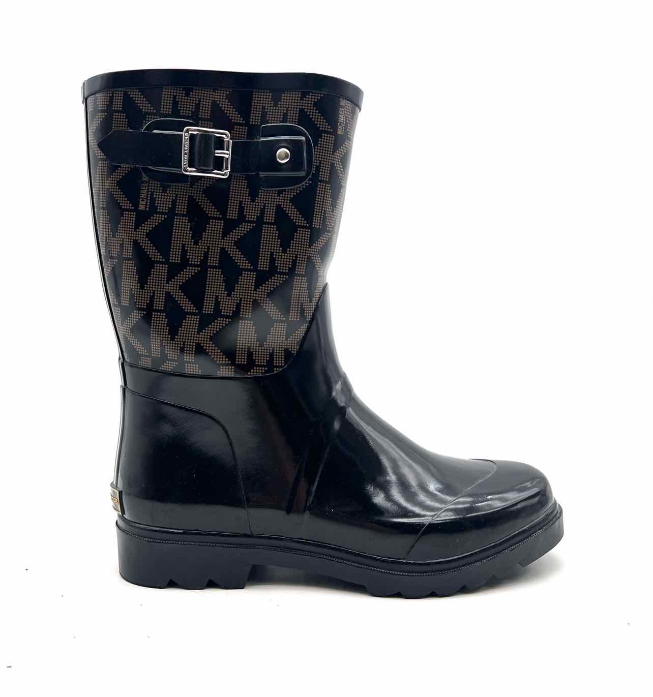 Michael Michael Kors Size 10 Black/Tan Signature Rubber Shoes Rainboots