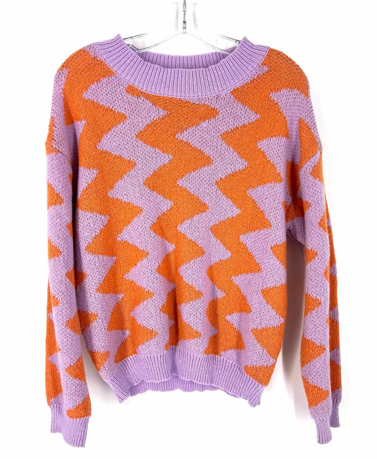 Size S Lavender/Orange Zigzag Knit Sweaters Sweater