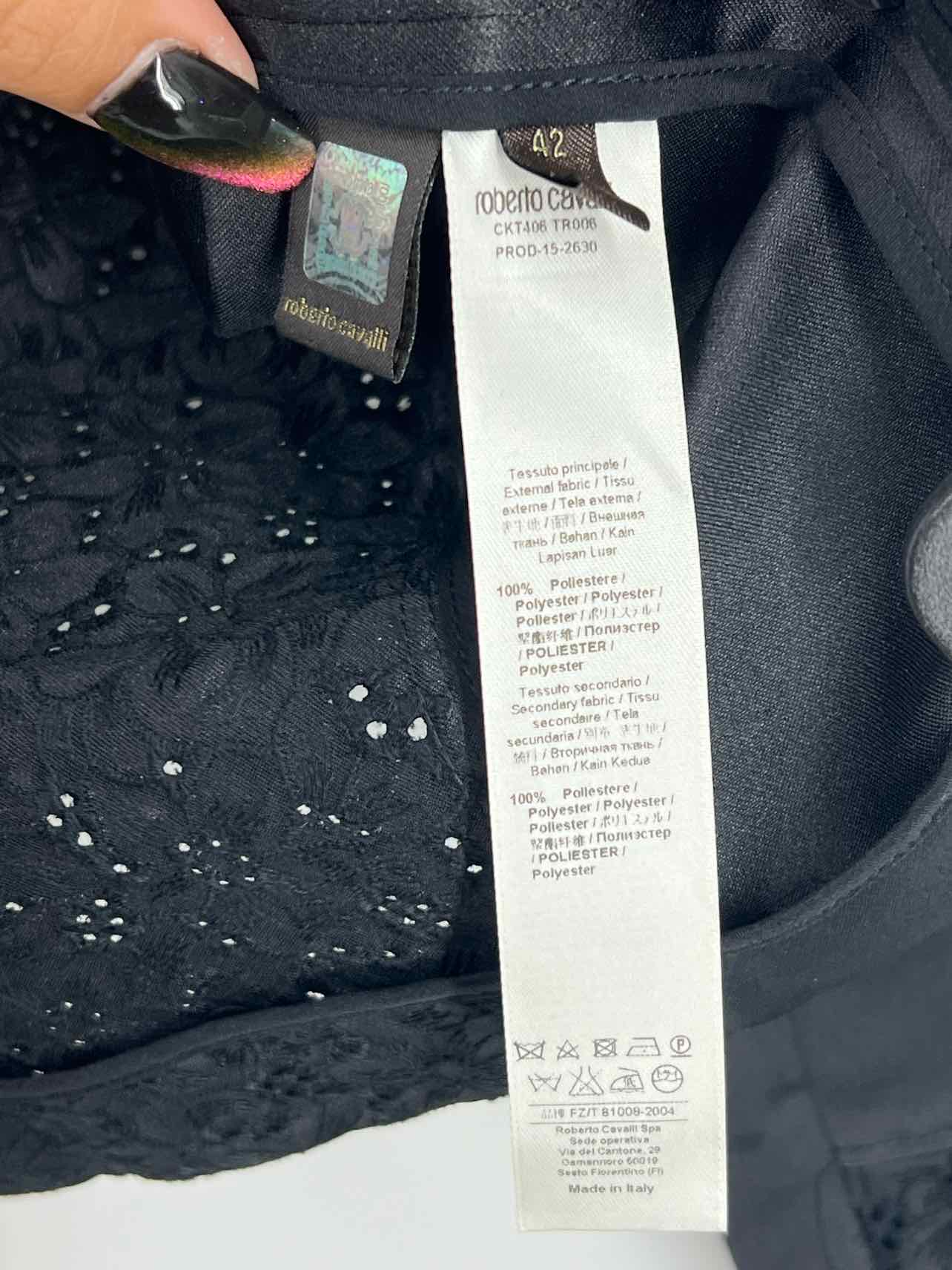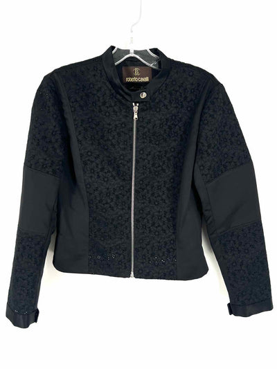 Roberto Cavalli Size 6 Black Floral Embroidered Designer Jacket