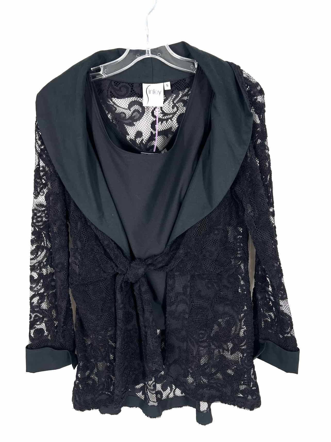 Finley Size S Black Tie Front Lace Designer Cardigan Set