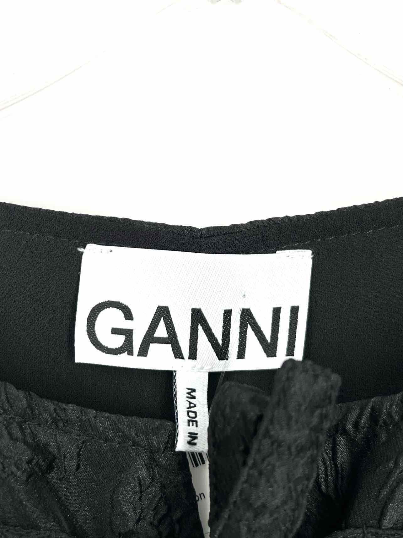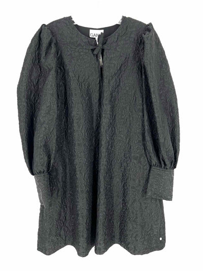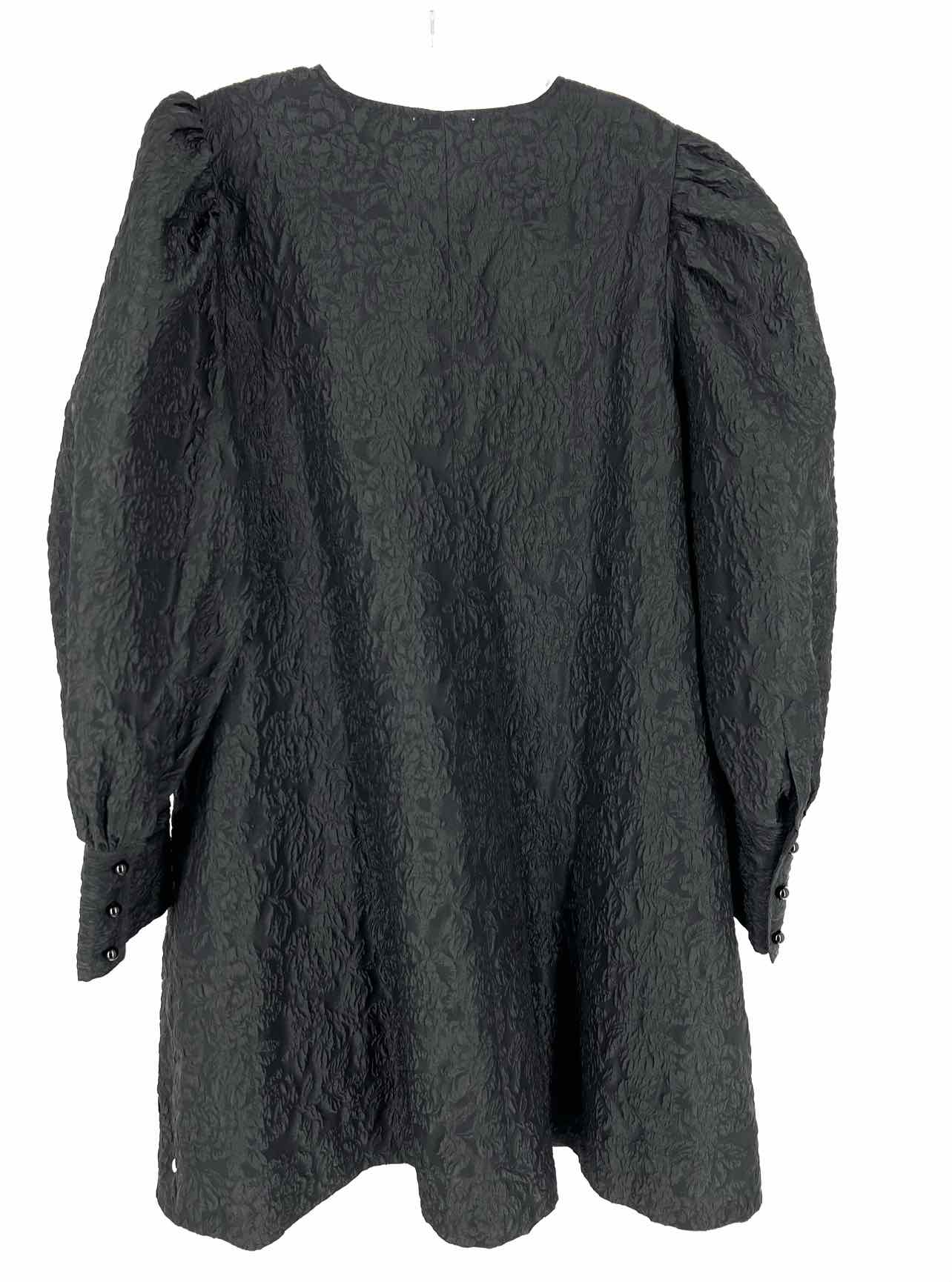 GANNI Size 10/12 Black Floral Balloon Sleeve Designer Dress