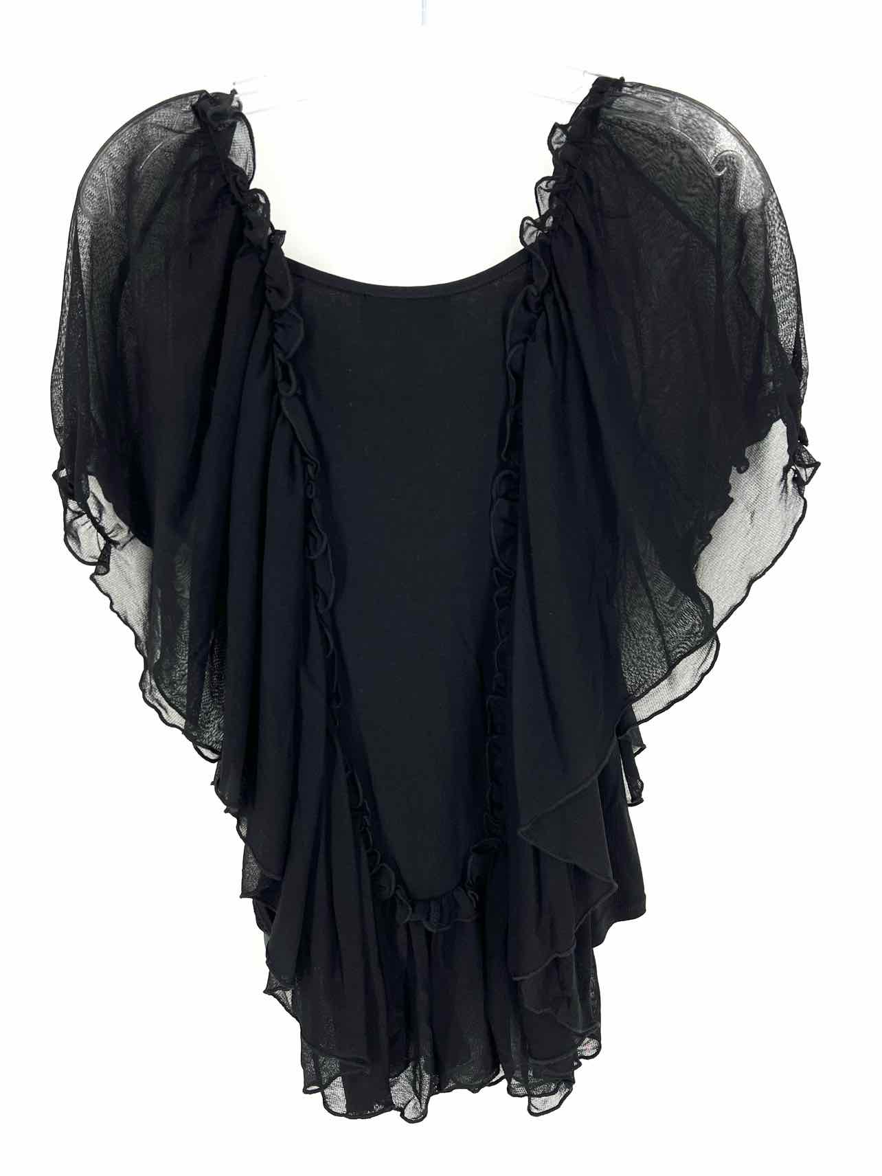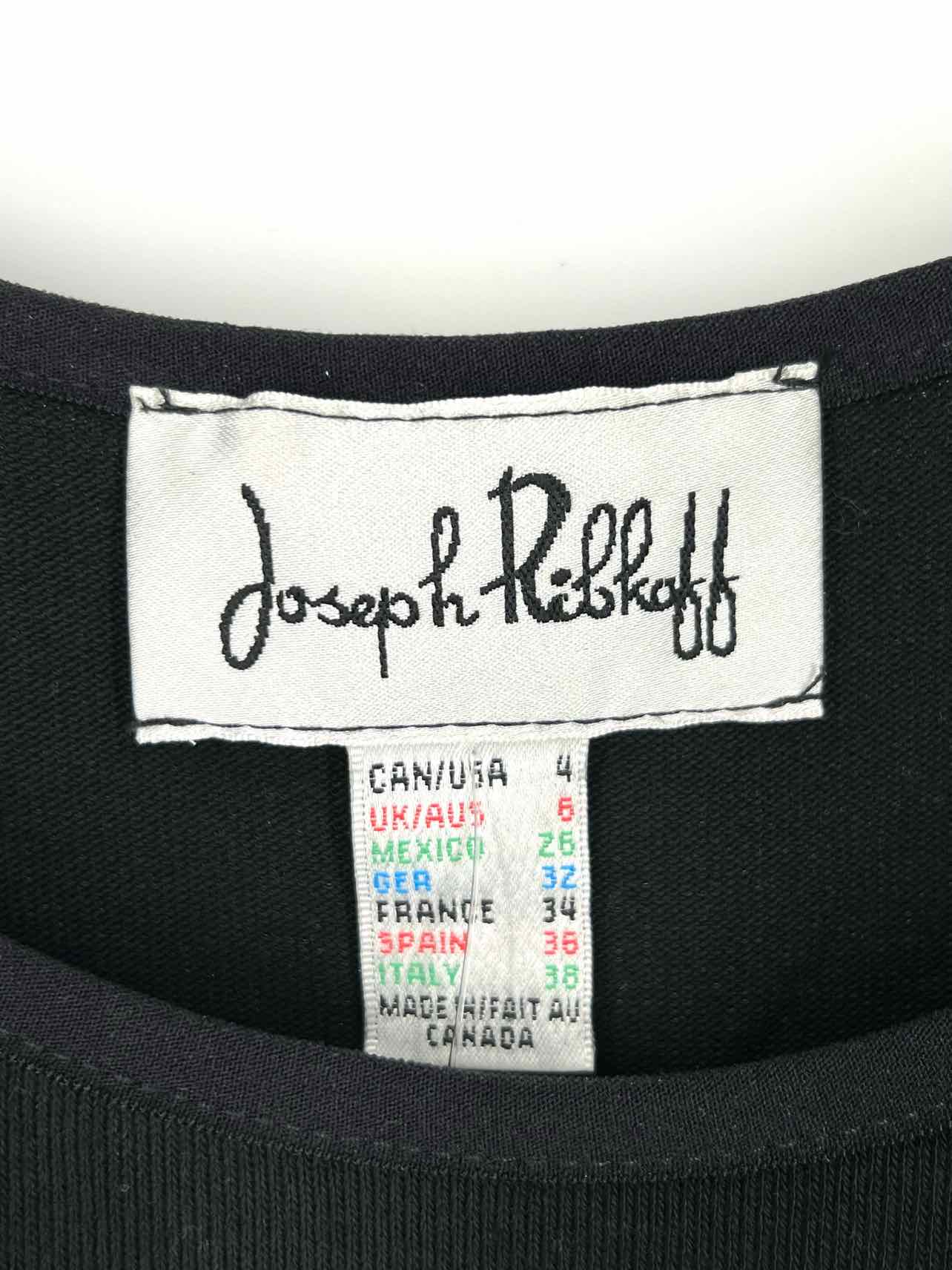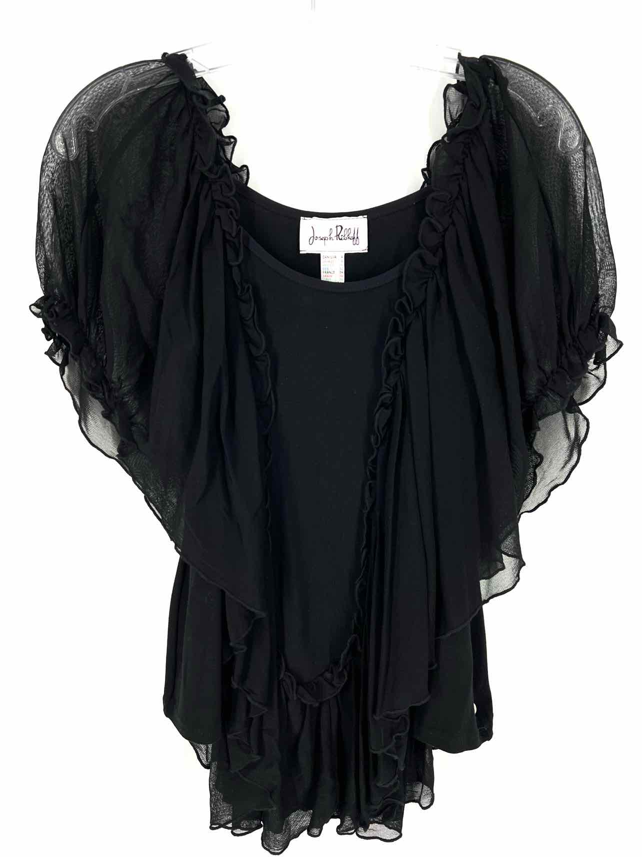 Joseph Ribkoff Size 4 Black Ruffles Ribbed Designer Top-Short Sleeve
