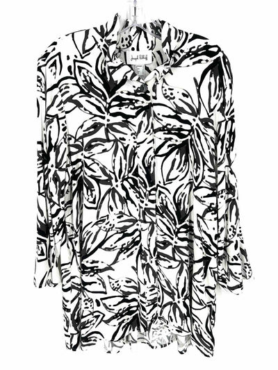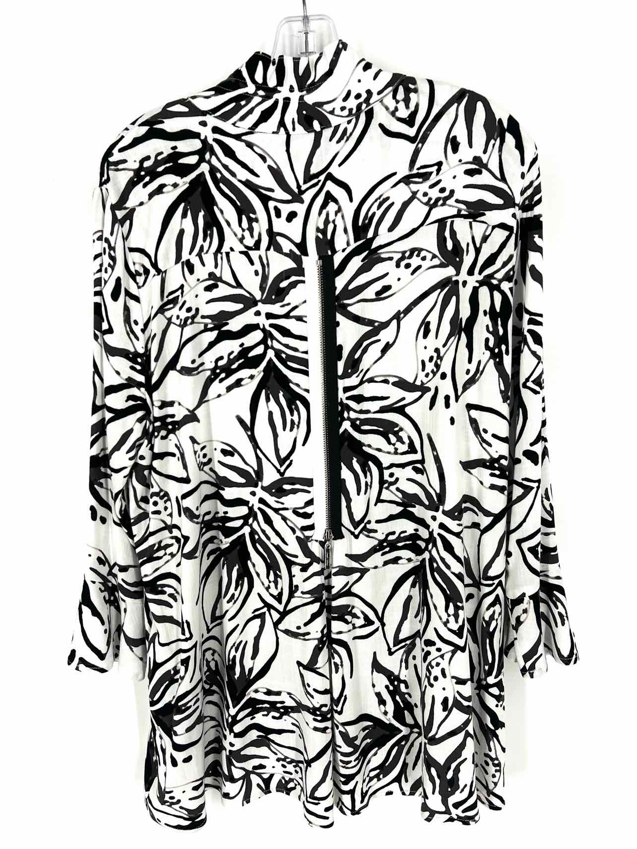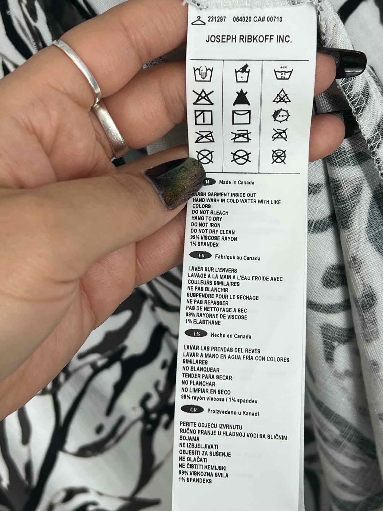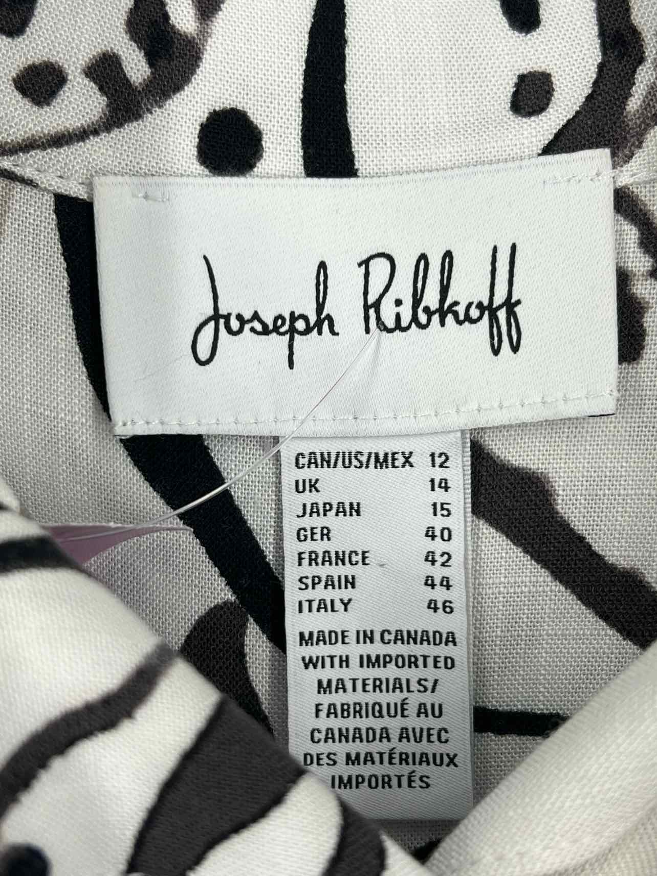 Joseph Ribkoff Size 12 Wh/Bk/Gry Leaves Designer Blouse