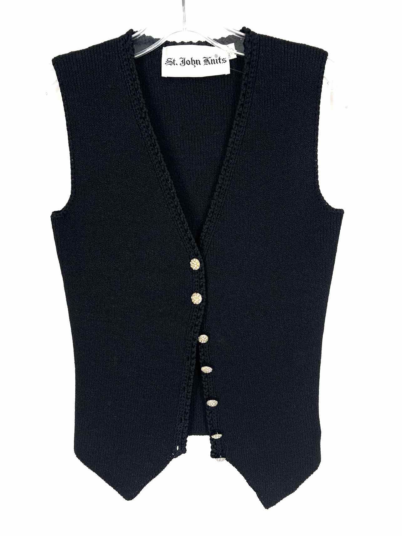 St. John Basics Size S Pet Black Knit Designer Top-Sleeveless