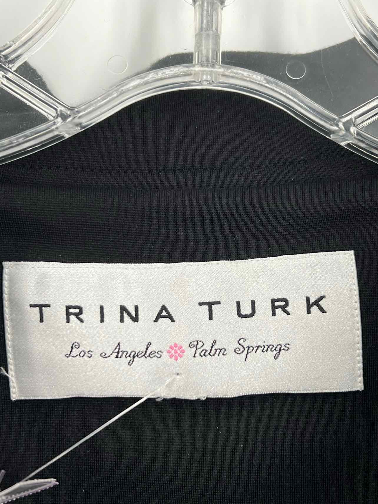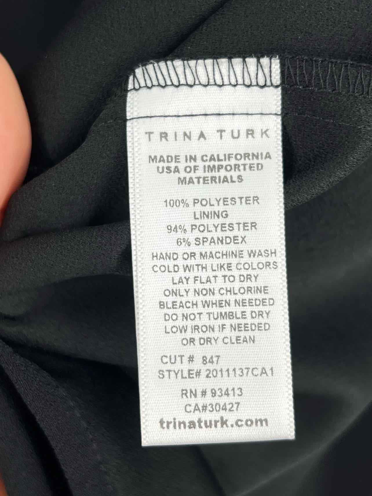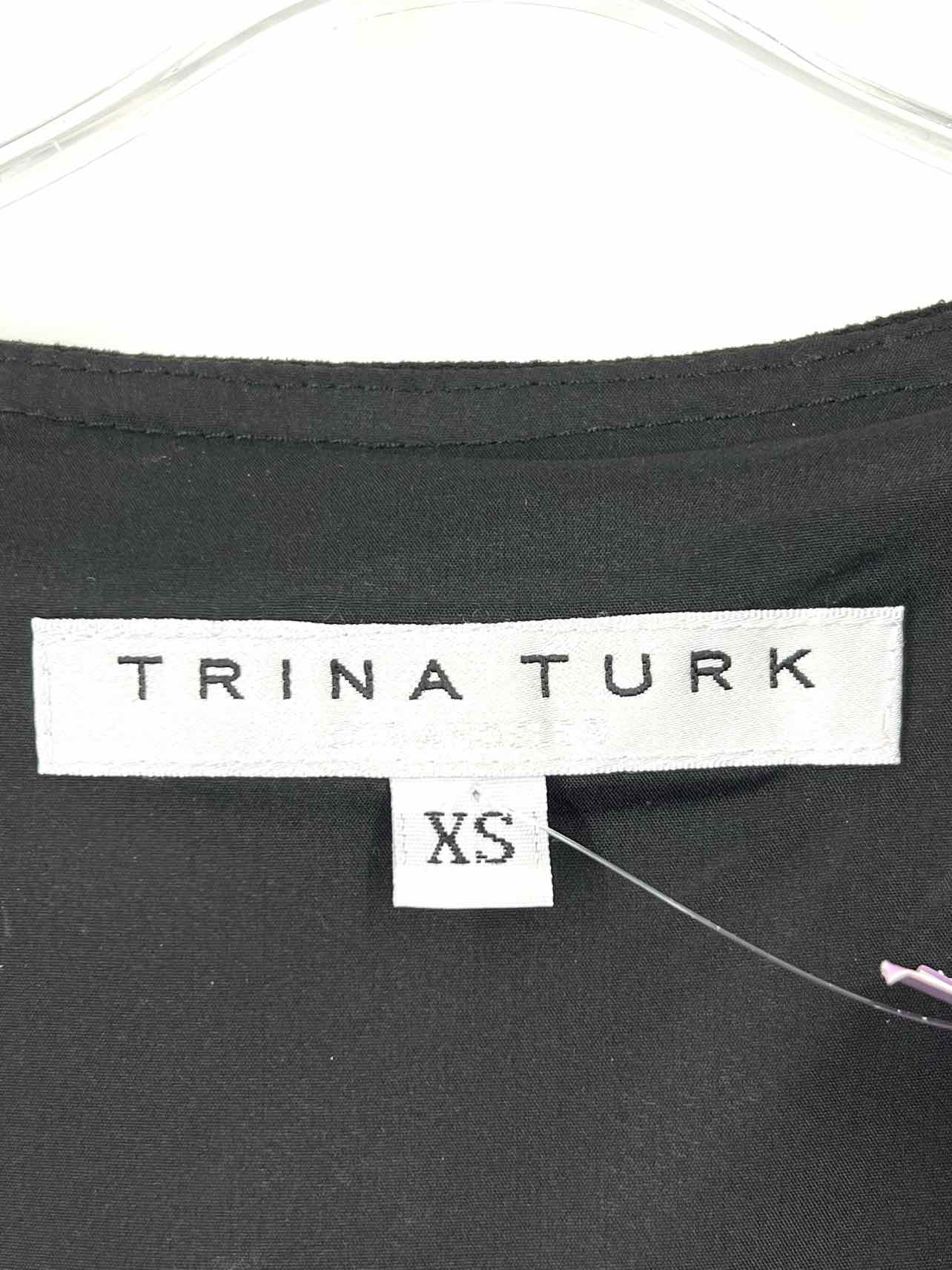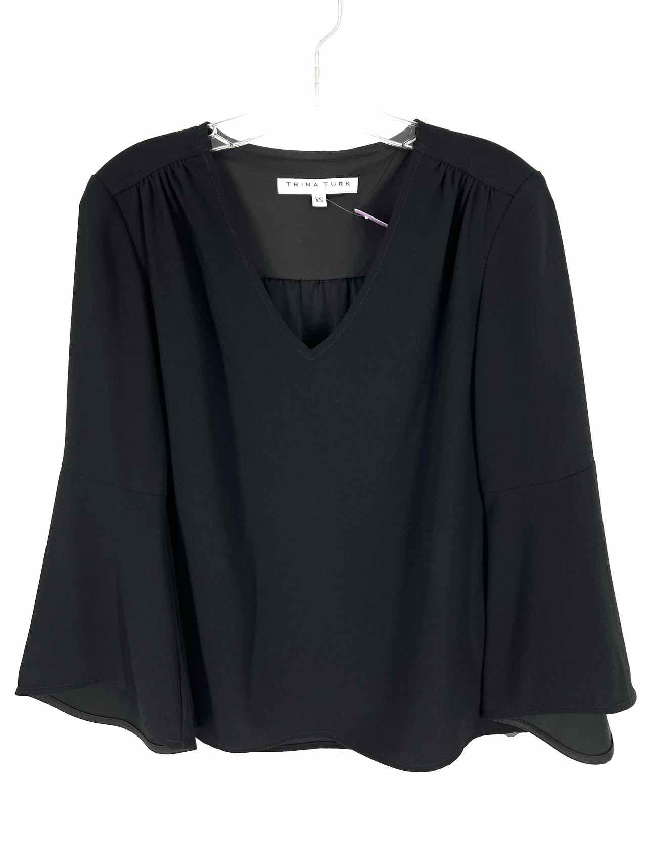 Trina Turk Size XS Black V-Neck Gathered Designer Top-3/4 Sleeve