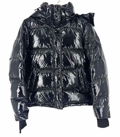 Aqua Size M Black Puffed Patent Jackets Jacket