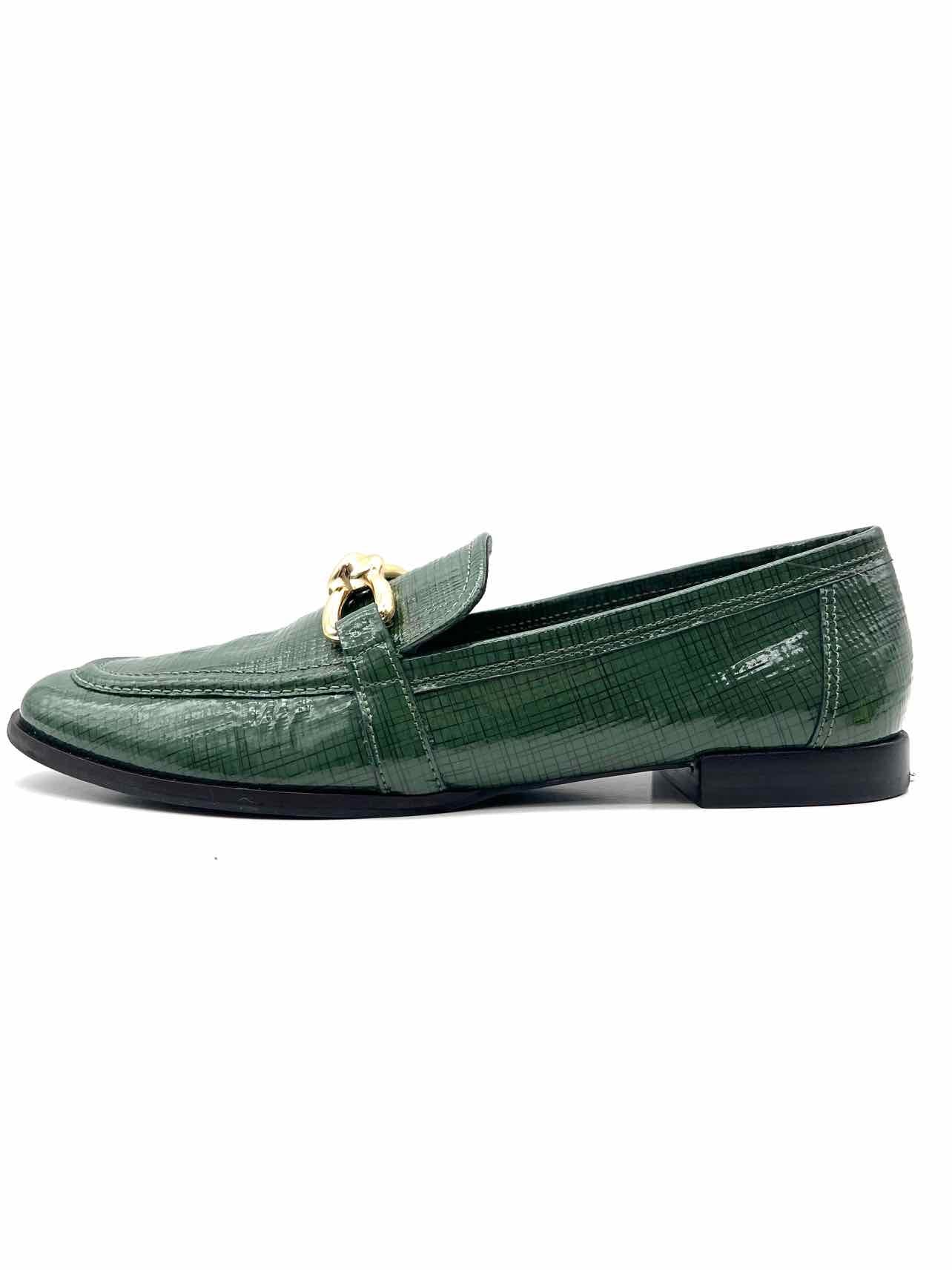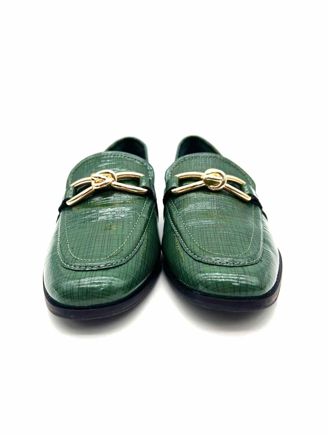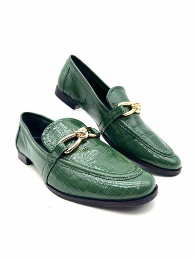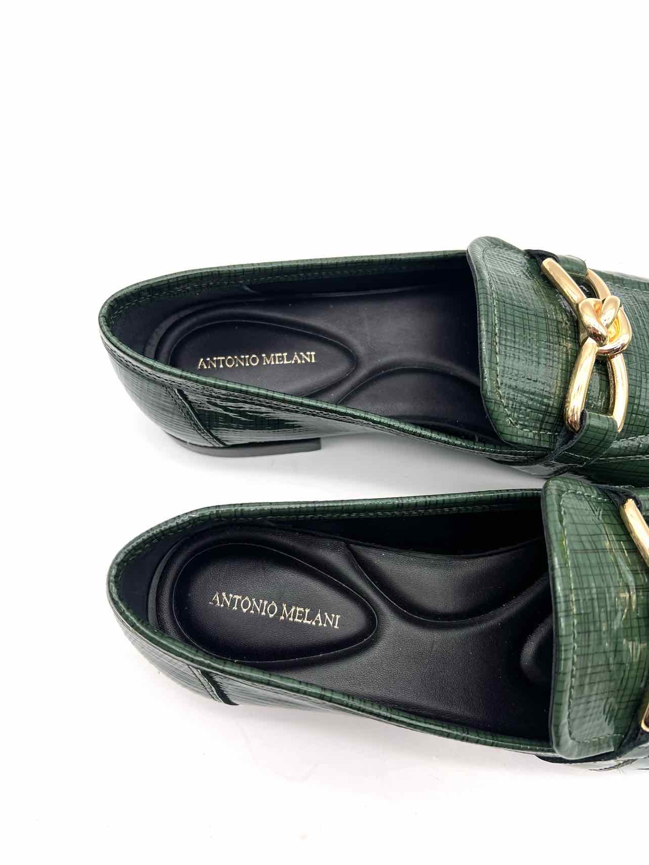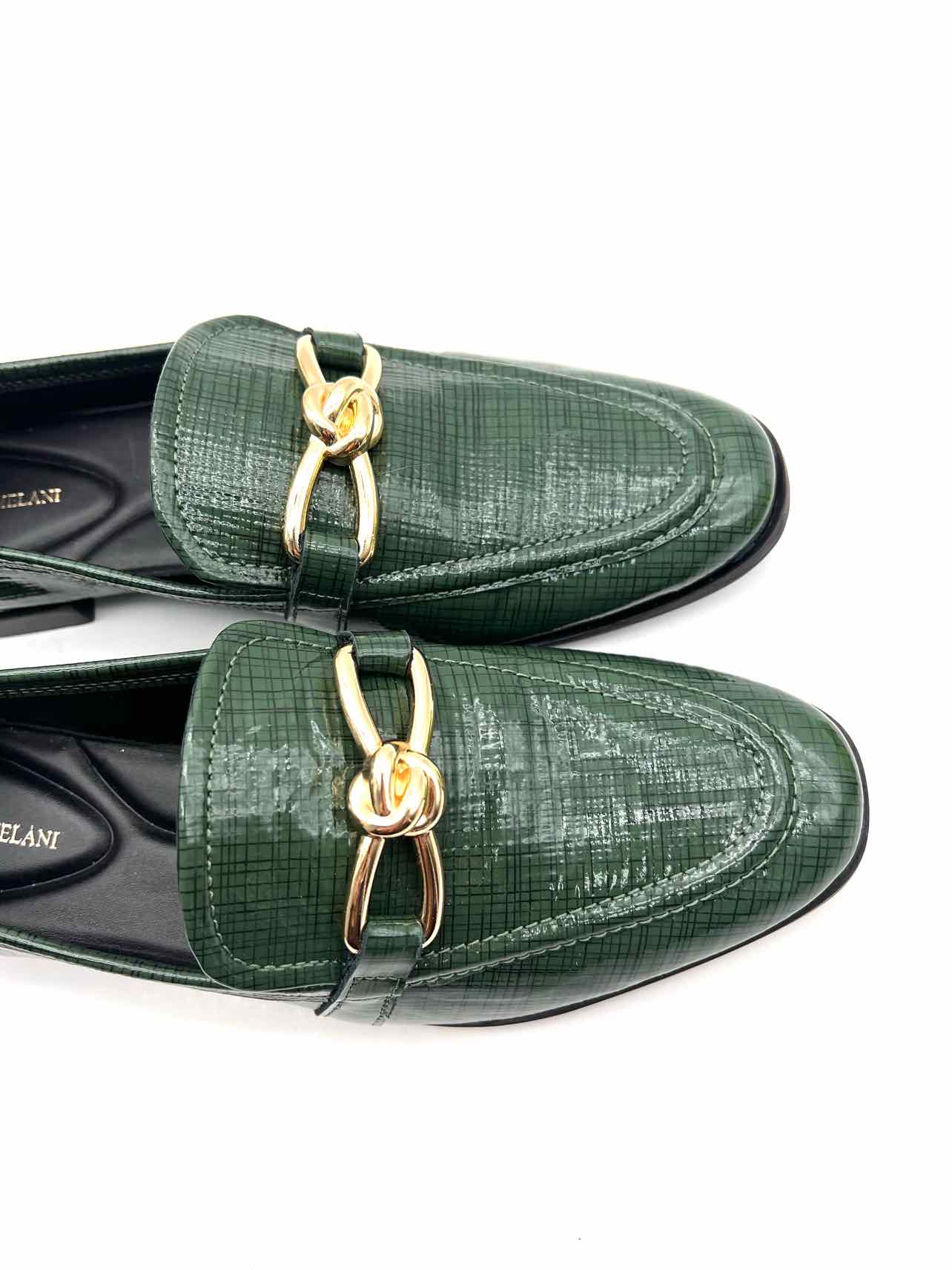 Antonio Melani Size 8 Gr/Bk/Gld Knot Patent Leather Shoes Loafers