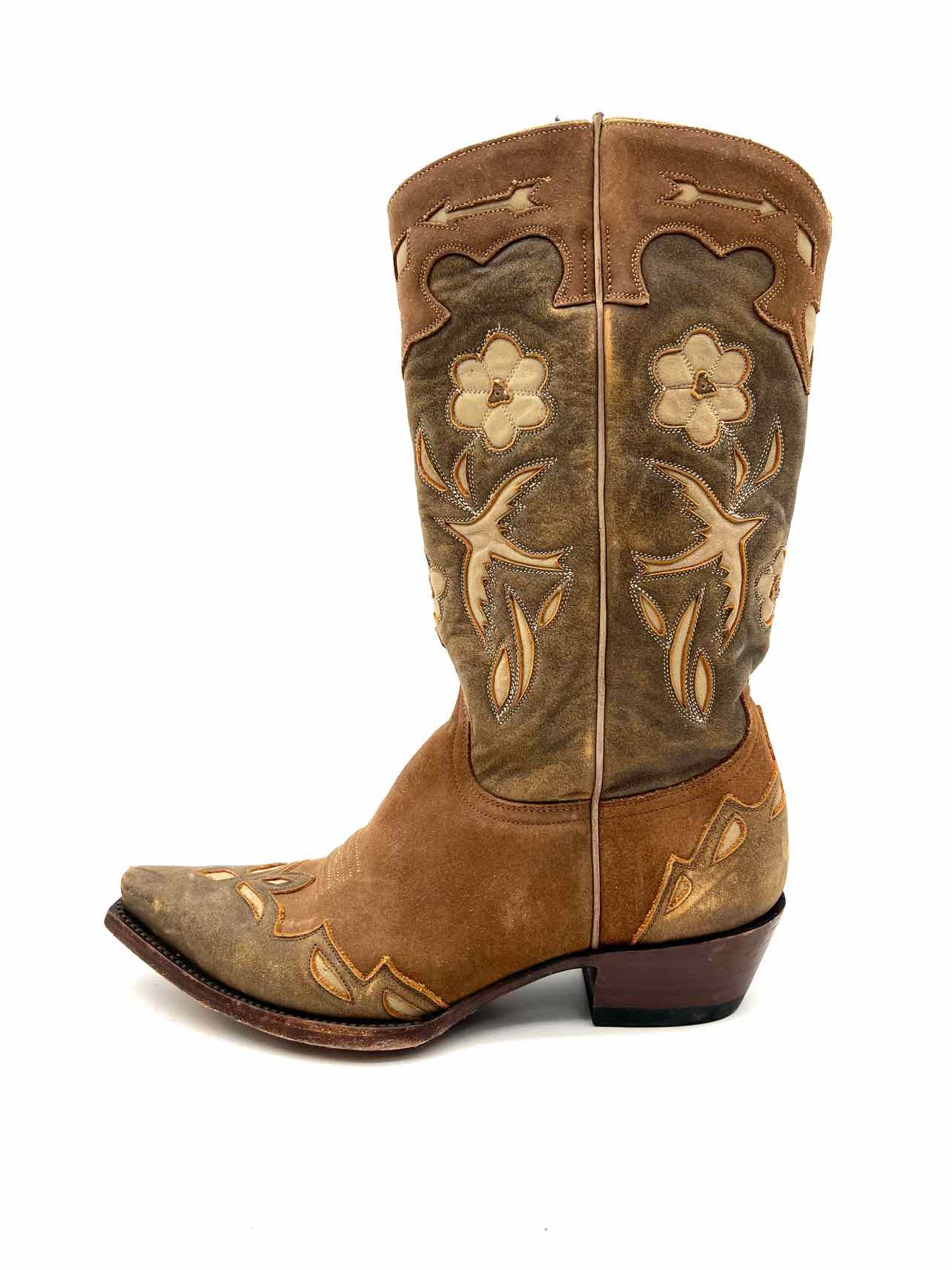 Old Gringo Size 9 Tan/Beige Floral Suede Shoes Cowboy Boots