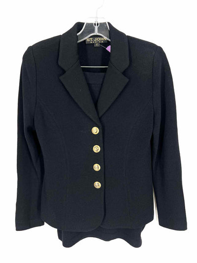 St. John Basics Size 2 Black/Gold Button(s) Knit Designer Skirt Suit