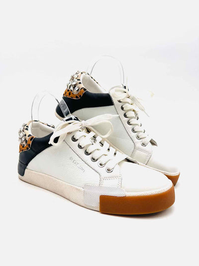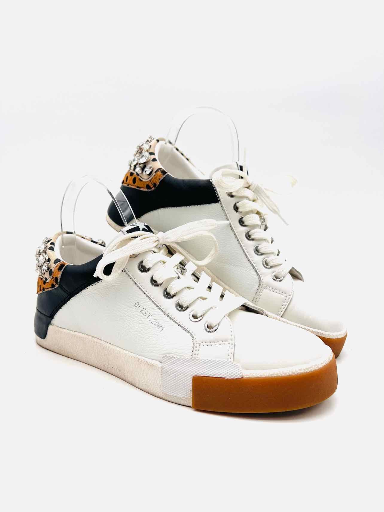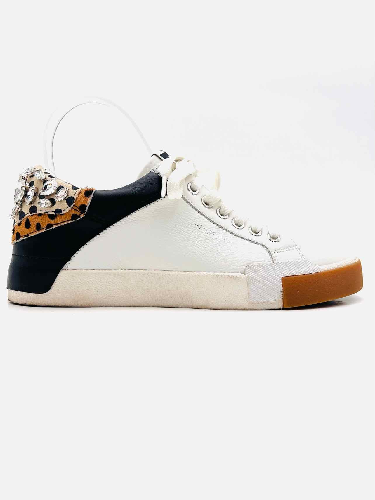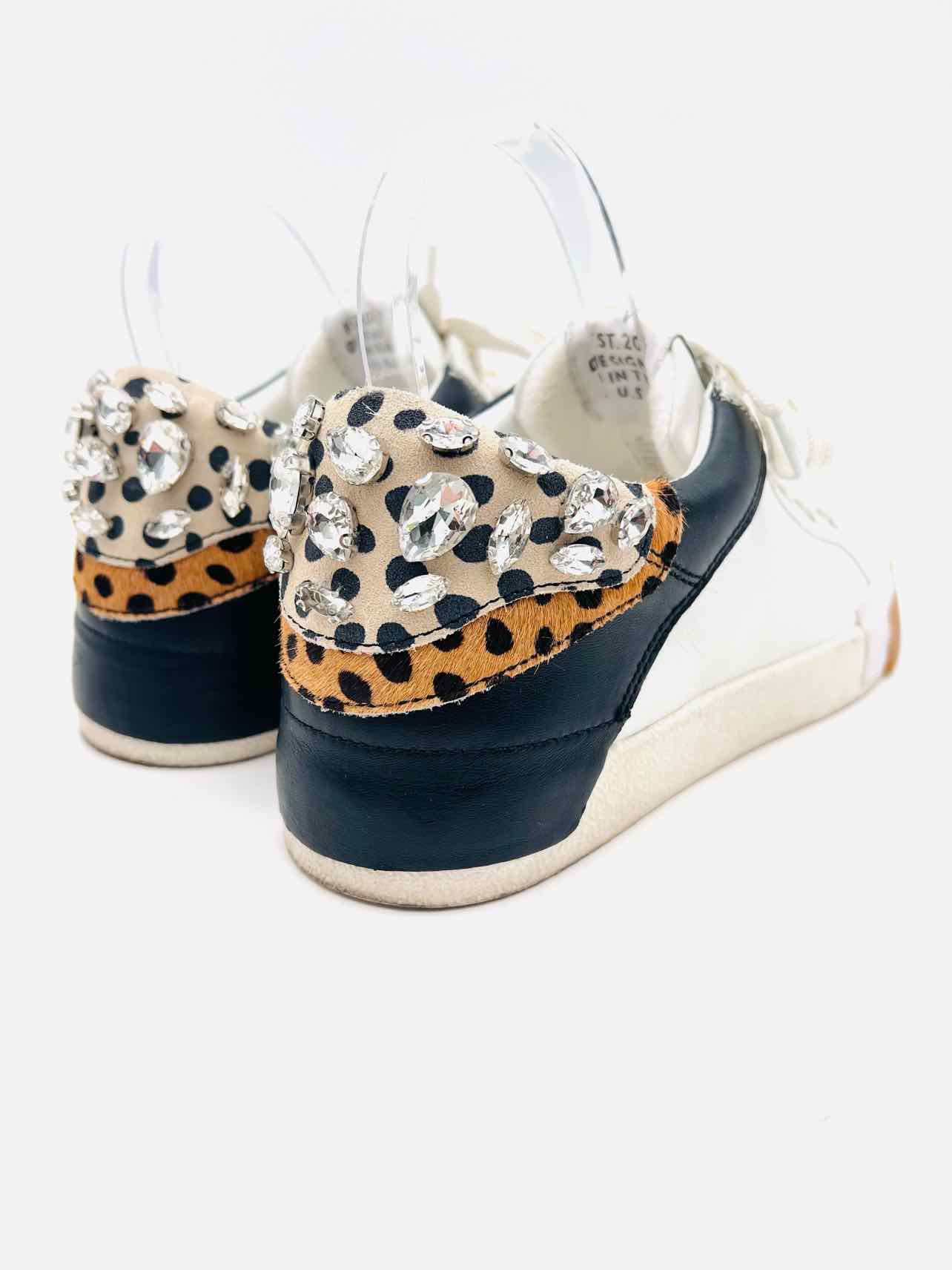 Gianni Bini Size 8 Wh/Bk/Br Animal Print Rhinestones Shoes Sneakers