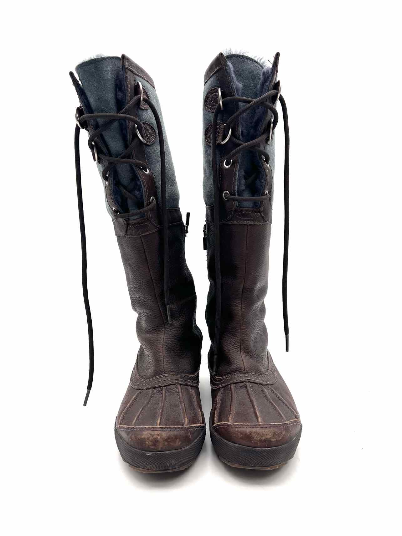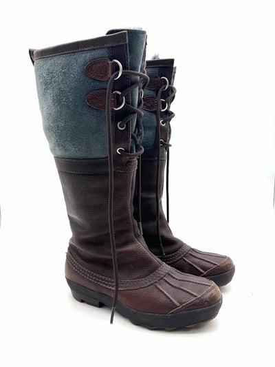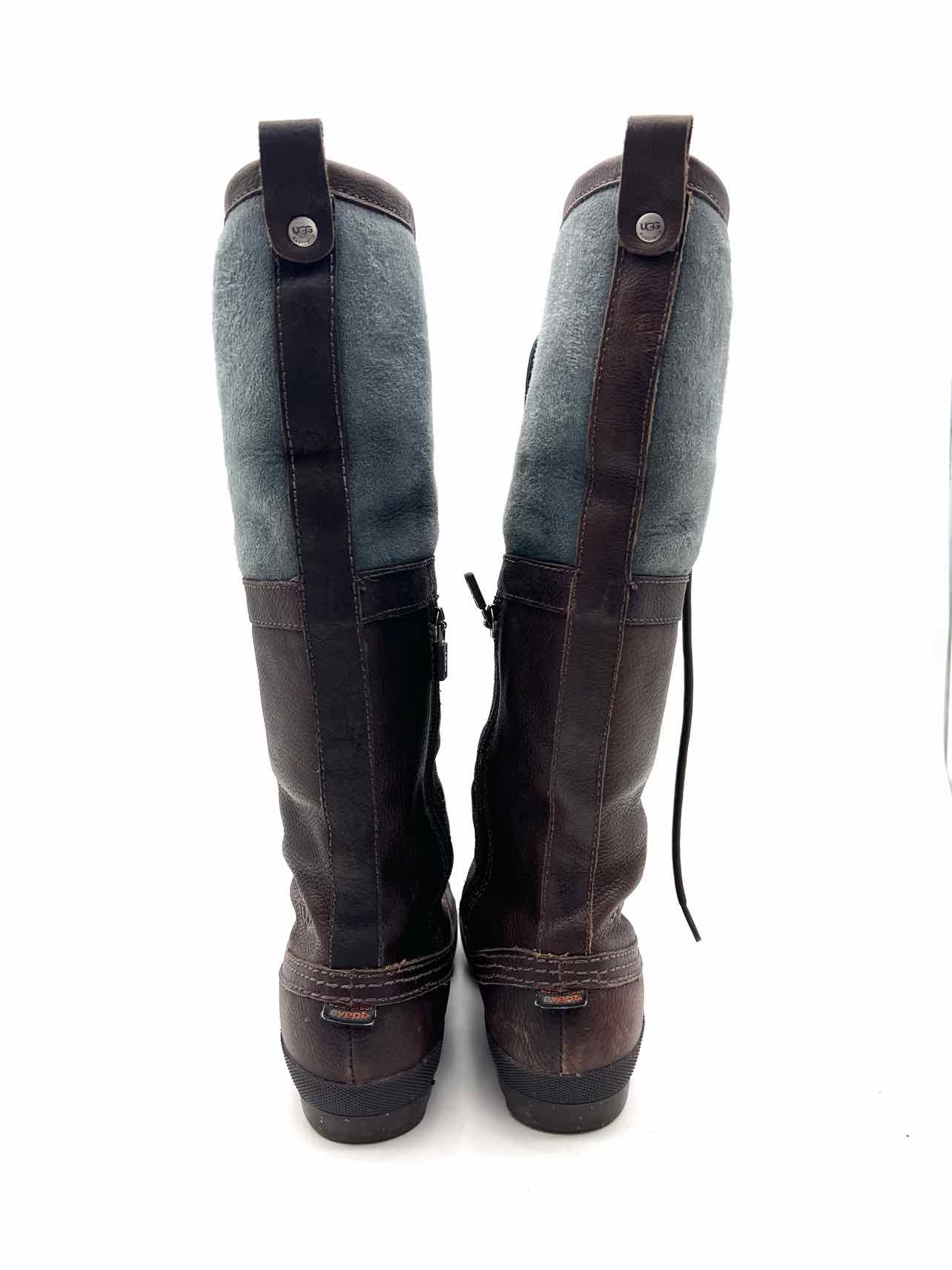 UGG Size 6 Chocolate/Gray Color Block Lace-Up Designer Boots