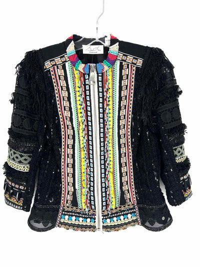 Byron Lars Size 6 Black/Multi Beaded Embroidered Designer Jacket