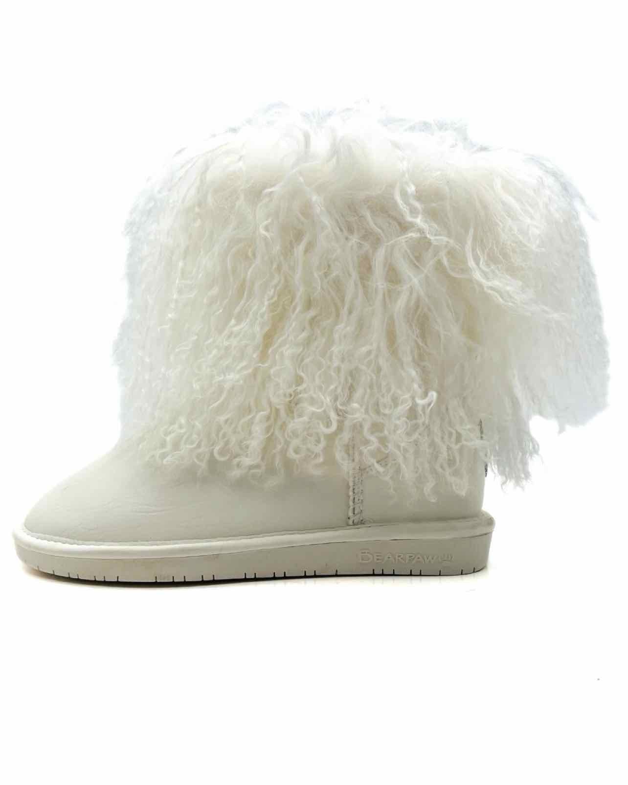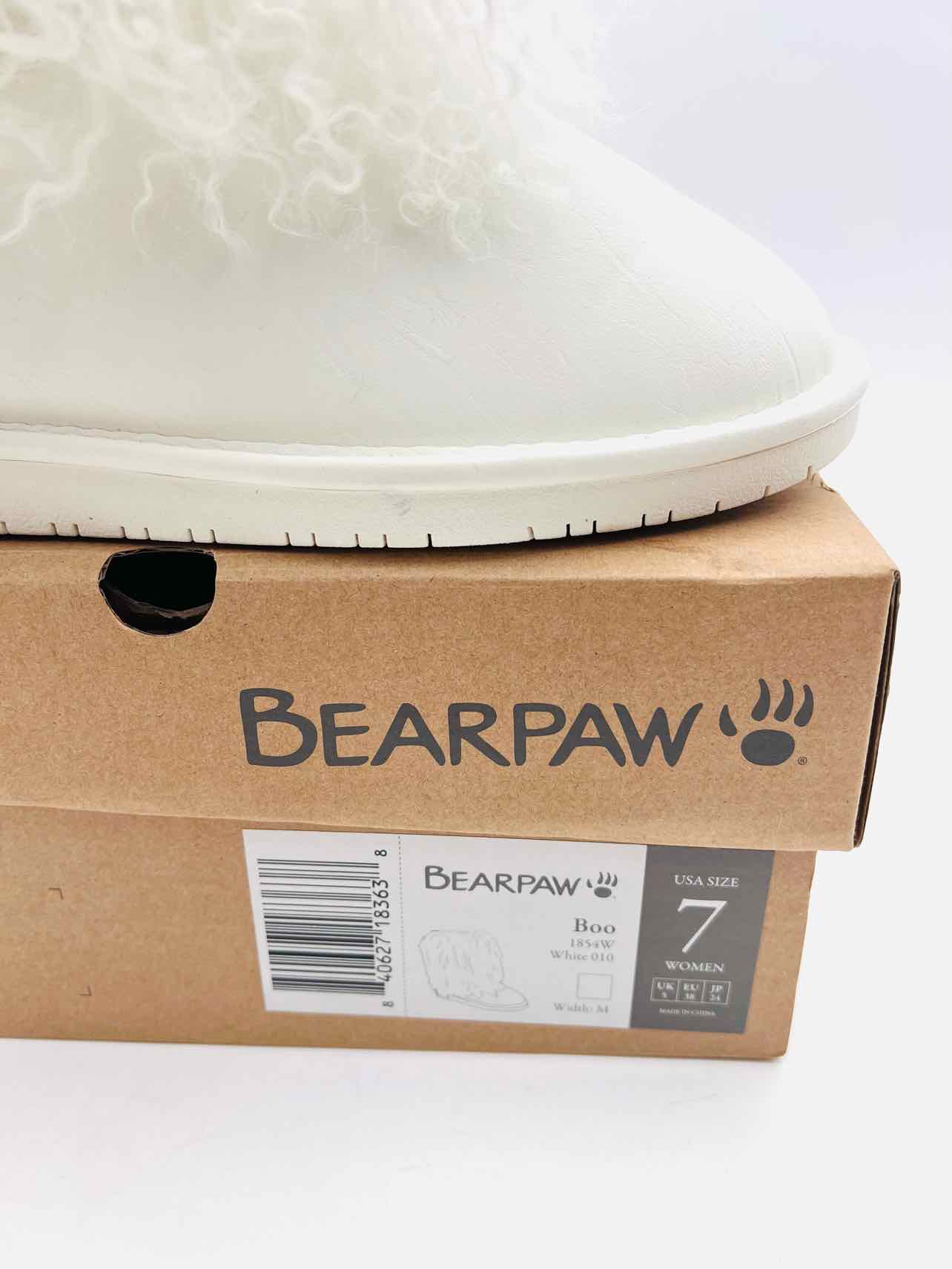 Bearpaw Size 7 White Fur Leather W/ BOX!!! Designer Boots