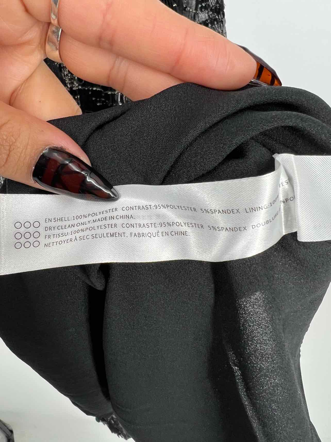 Voy Size L Black/White Peplum Tweed Blazer Jacket