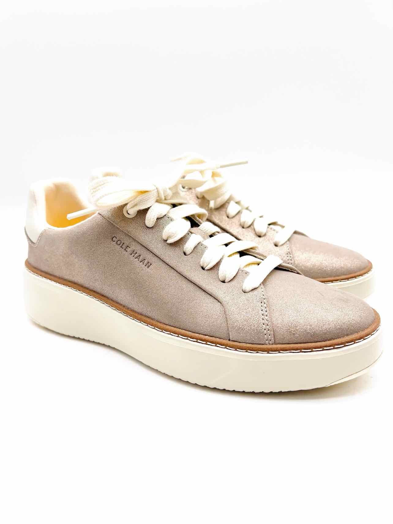 Cole Haan Size 8 Lt Taupe/Cream Lace-Up Metallic Shoes Sneakers