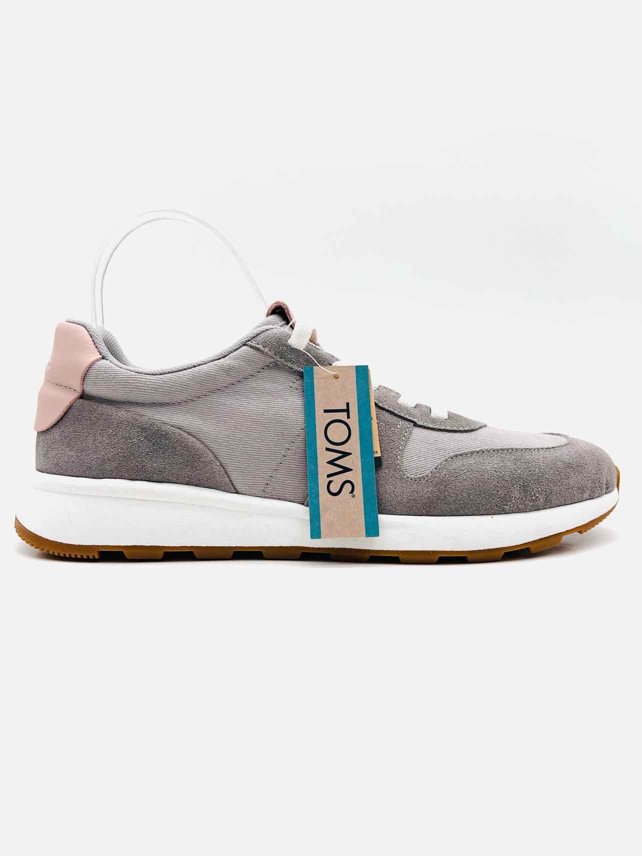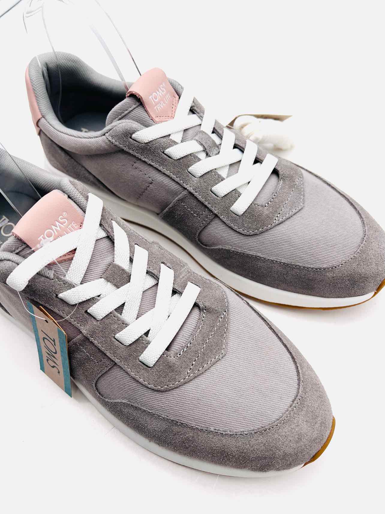 Toms Size 11 Gry/Wh/Pk Lace-Up Canvas/Suede NEW Shoes Sneakers