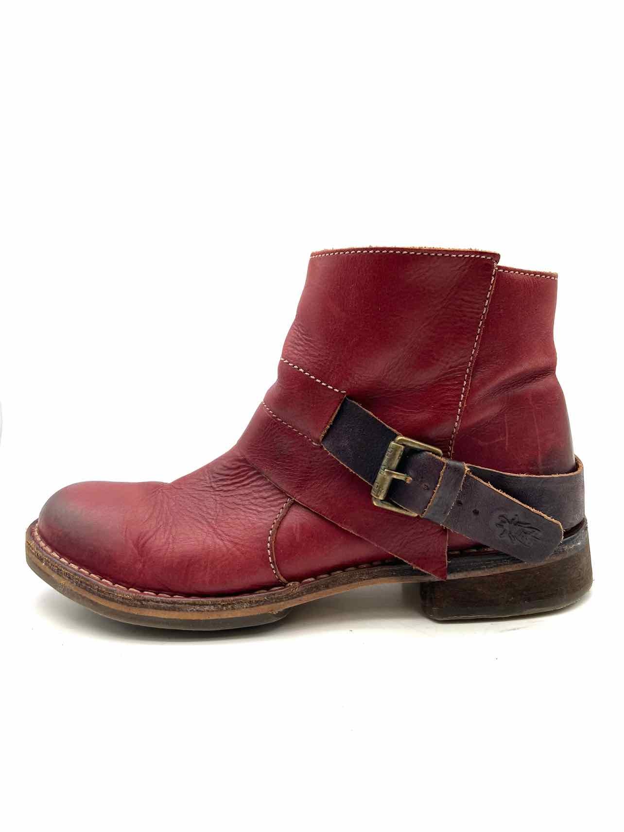 Fly London Size 10 Red/Brown Buckle(s) Leather Shoes Ankle Boots