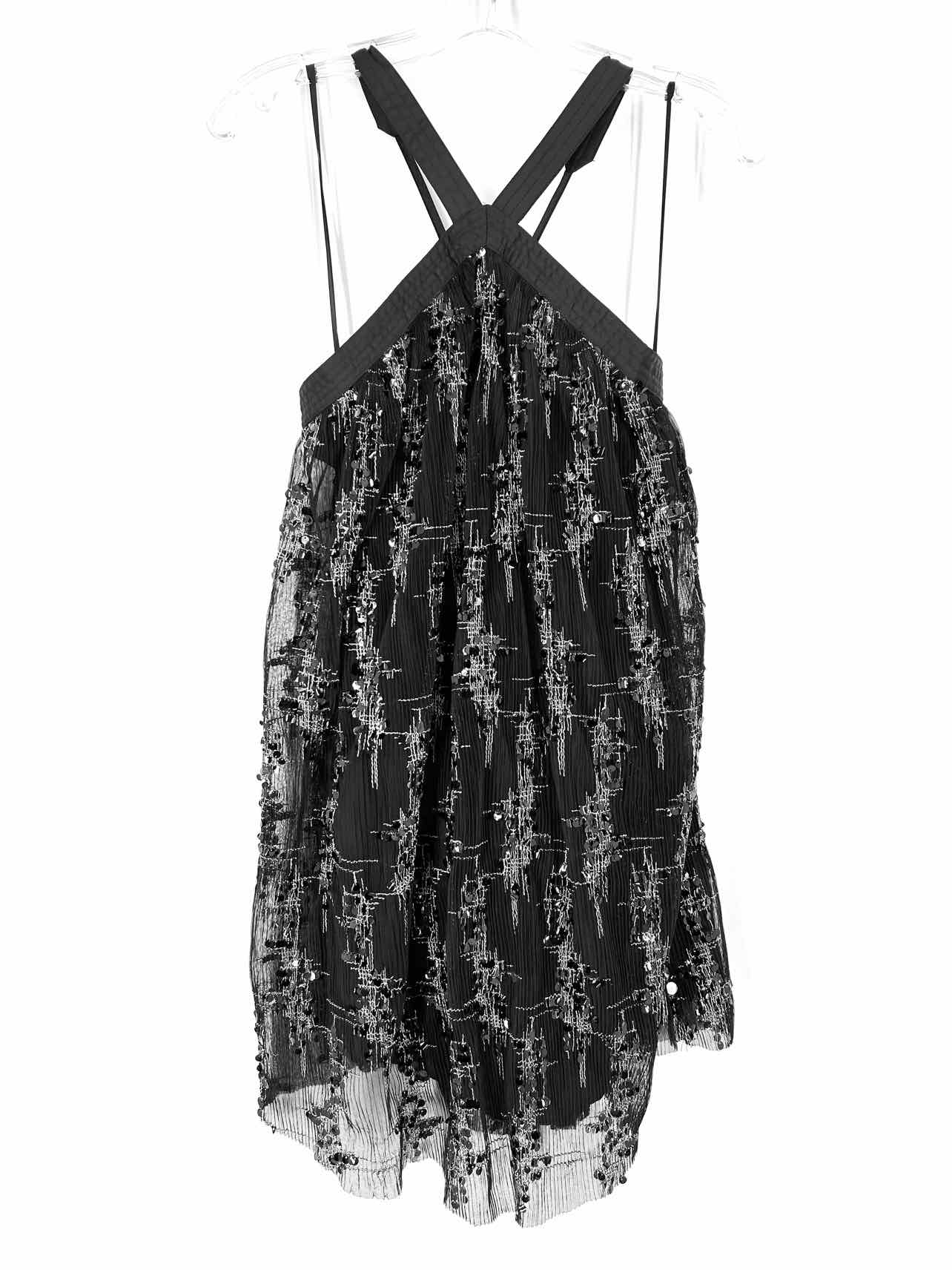 En Saison Size S Black/Silver Embroidered Sequin Designer Dress