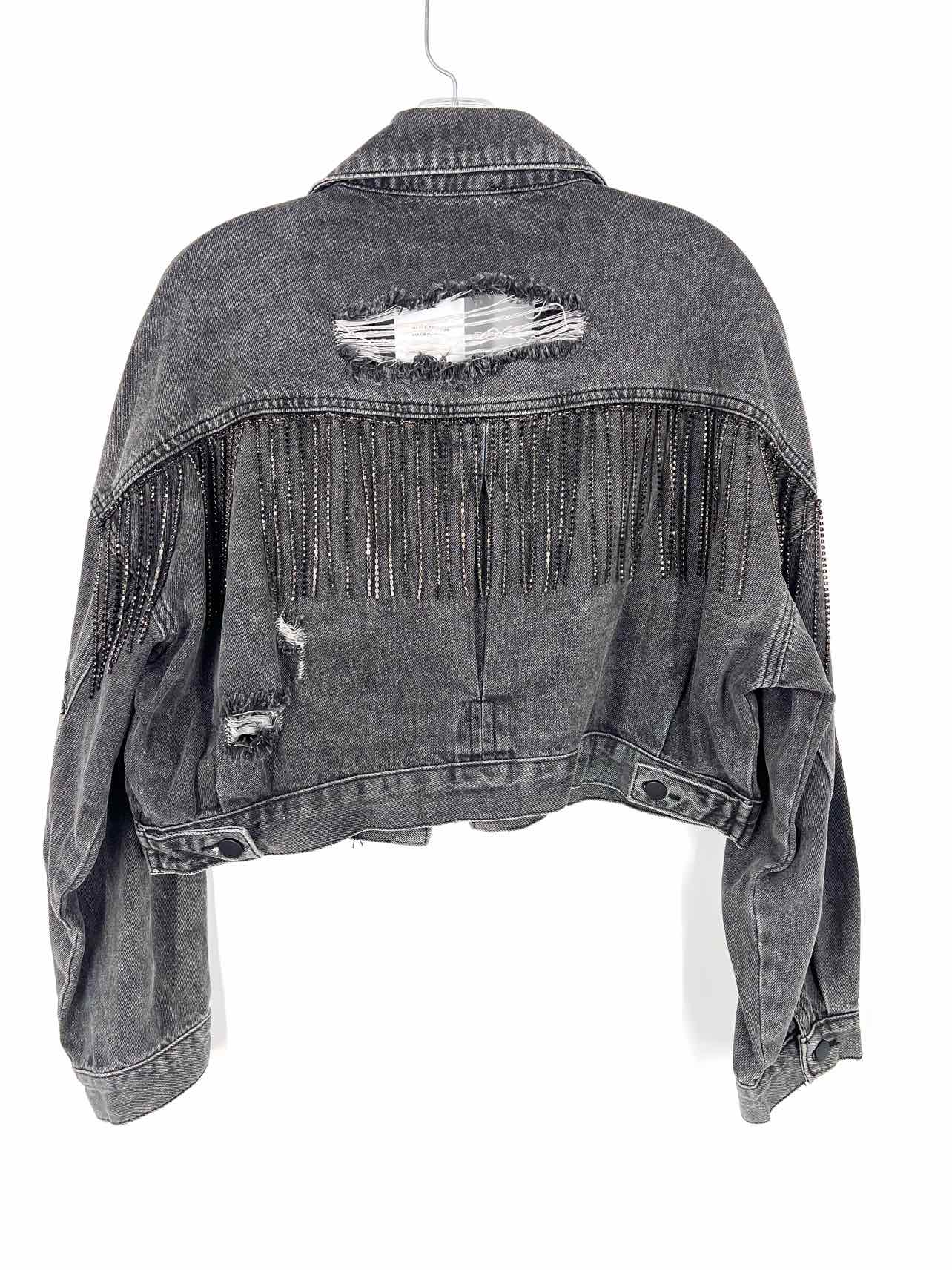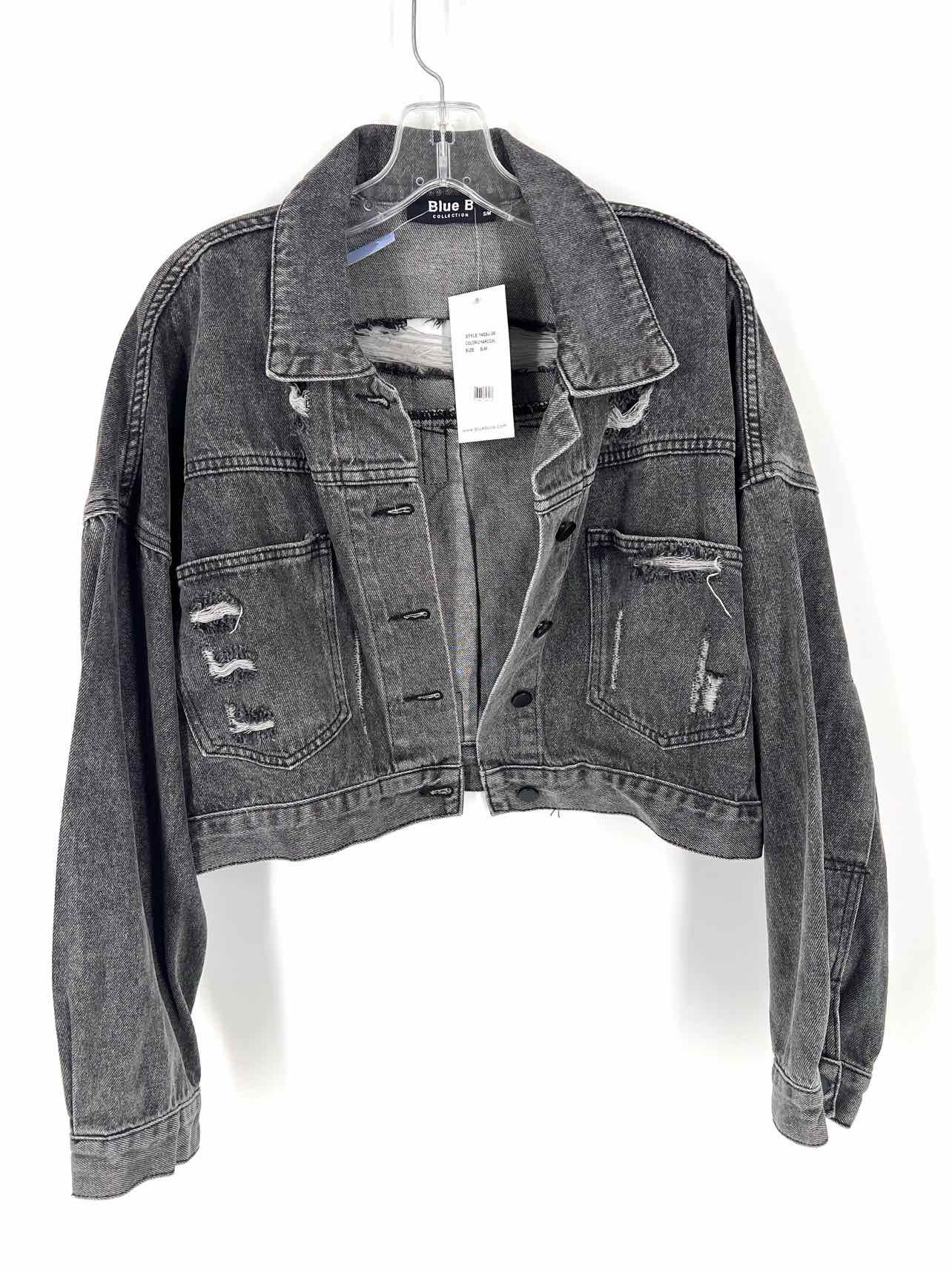 Blue B Size S/M Charcoal Denim Distressed Rhinestones NEW Blazer Jacket