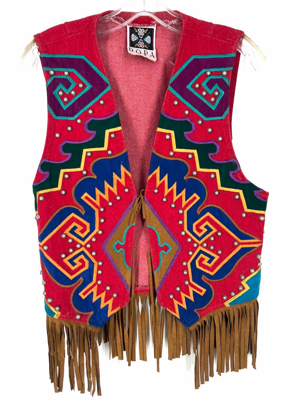 Ropa Size 4 Red/Multi Embroidered Conchos Designer Vest