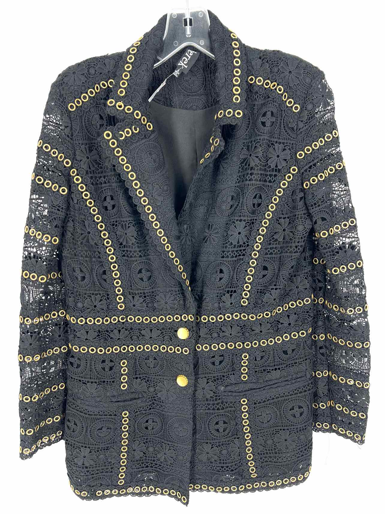 Berek Size S Black/Gold Grommets Lace Designer Blazer
