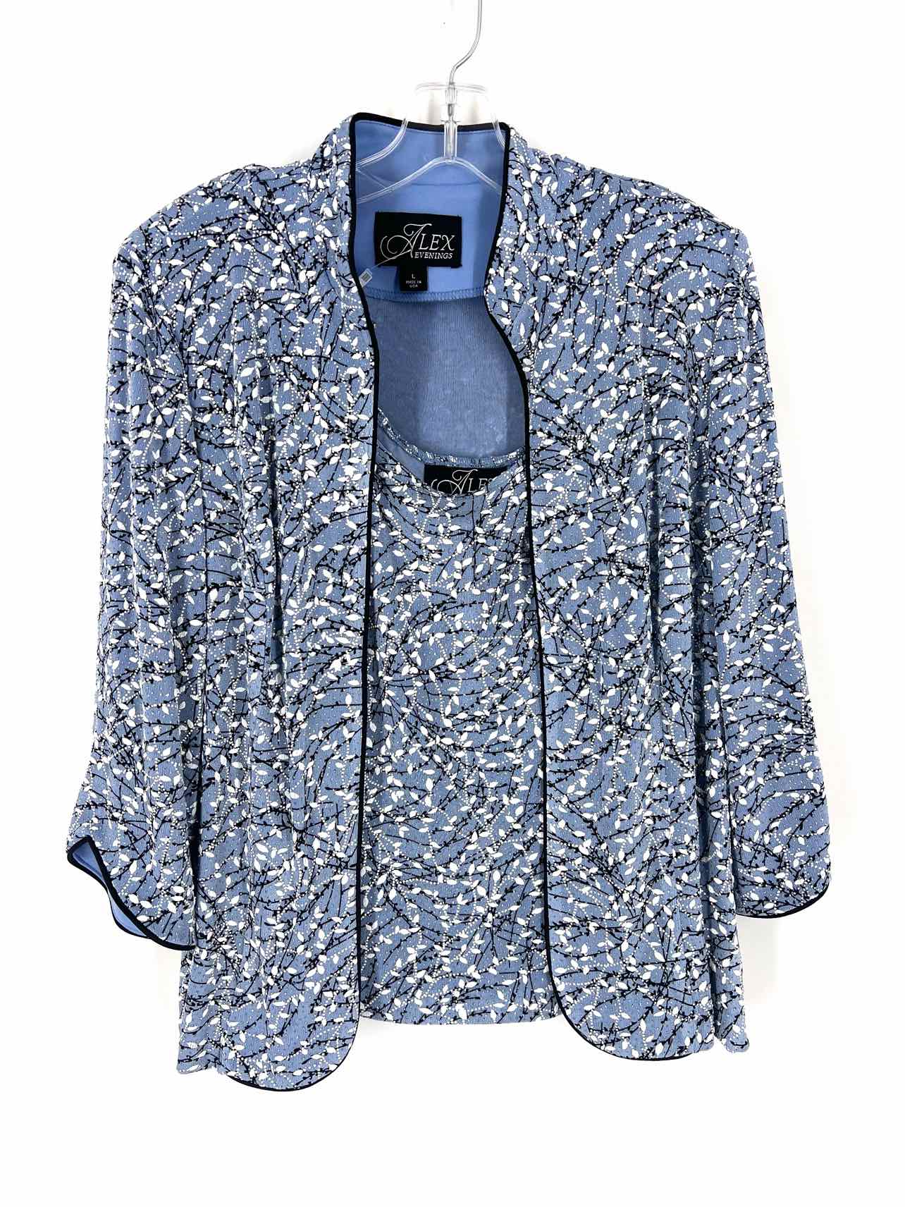 Alex Evenings Size L Bl/Wh/Bk Textured Sequin Formal Wear Cardigan Set