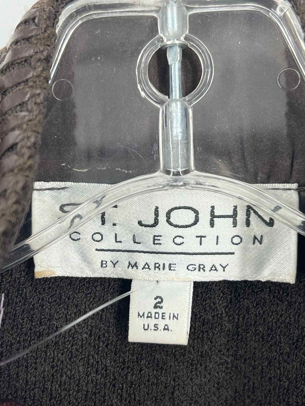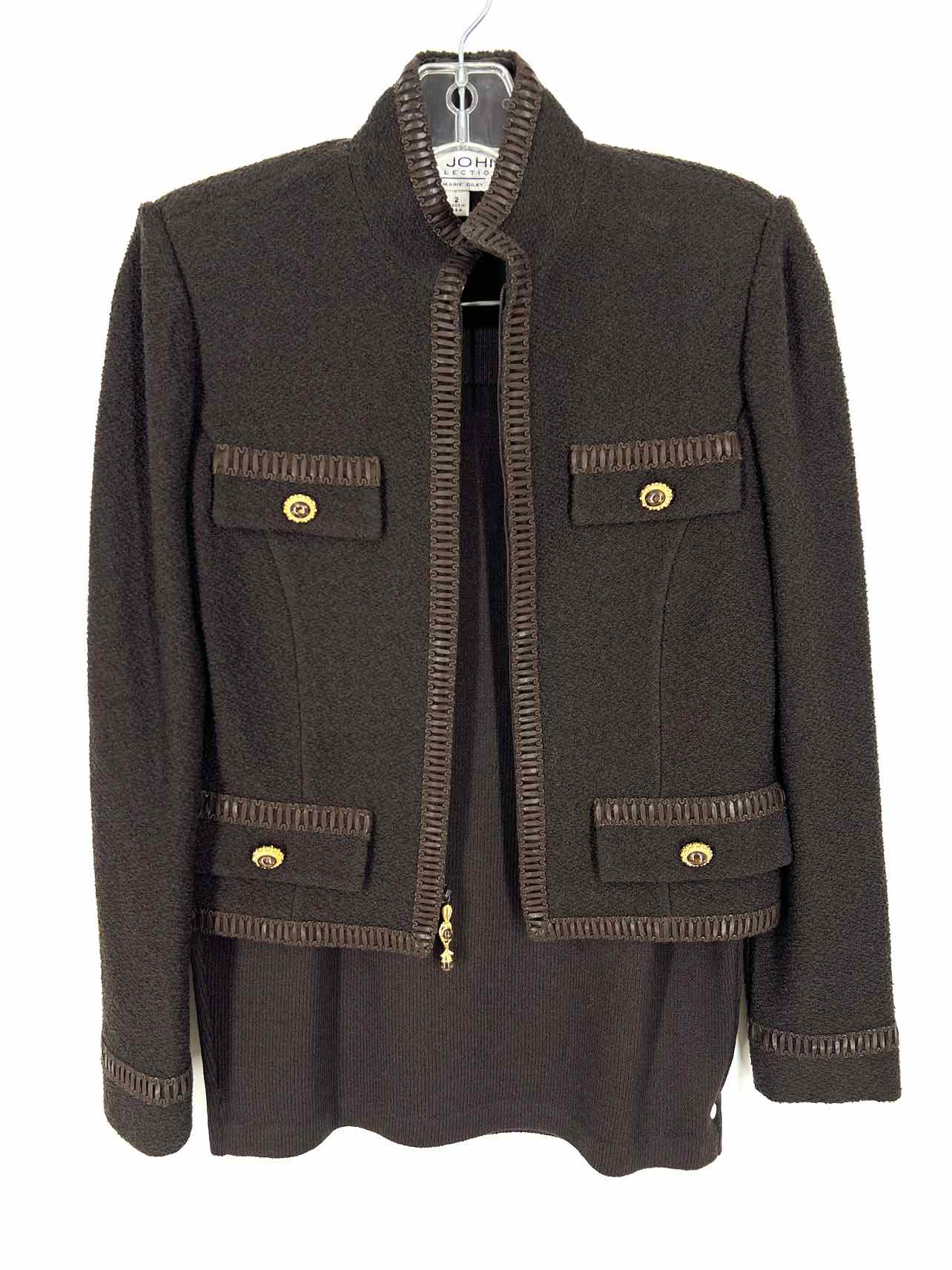 St. John Collection Size 2 Chocolate/Gold Ladder Trim Buttons Skirt Suit