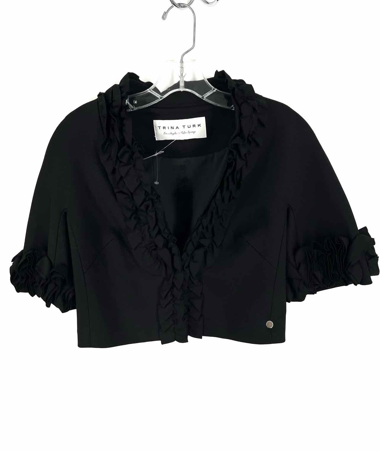 Trina Turk Size S ? Black Cropped Ruffle Designer Jacket