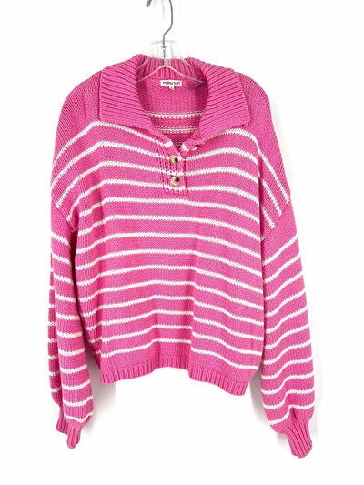 Main Strip Size L Pink/White Stripe Collar Sweaters Sweater