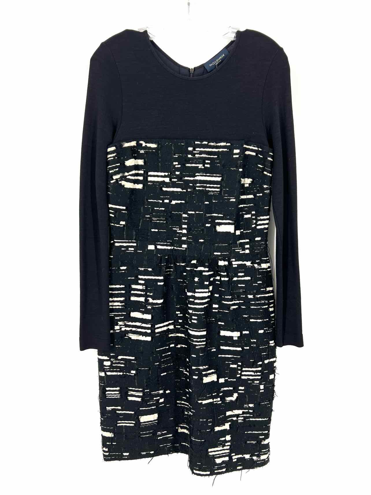 Piazza Sempione Size 8 Black/White Textured Wool Blend Designer Dress