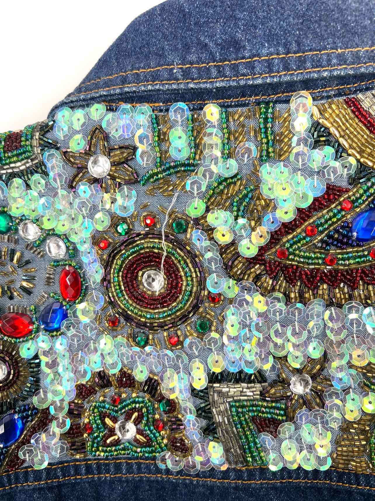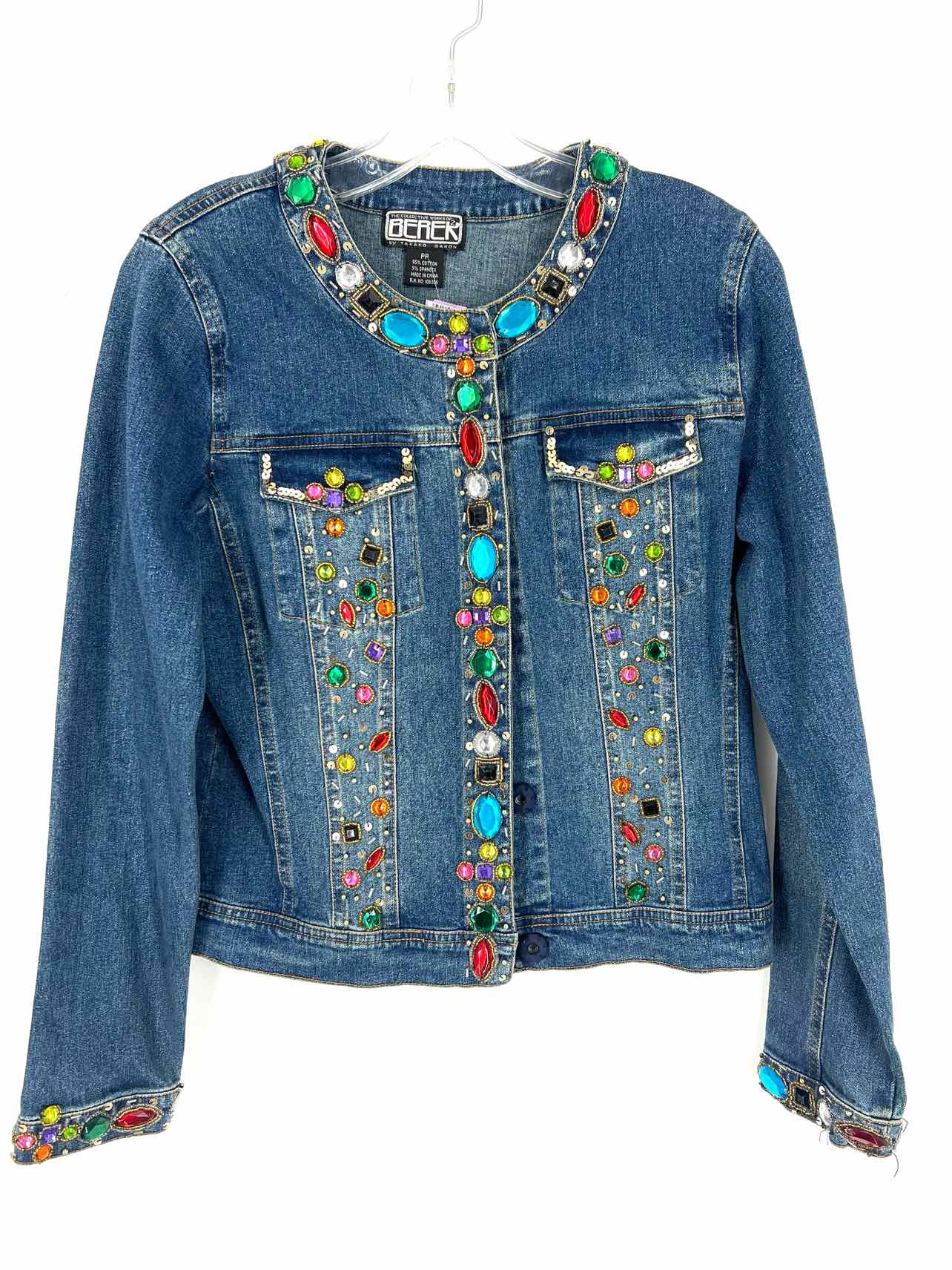 Berek Size S Pet Denim/Multi Jeweled Beaded Designer Jacket