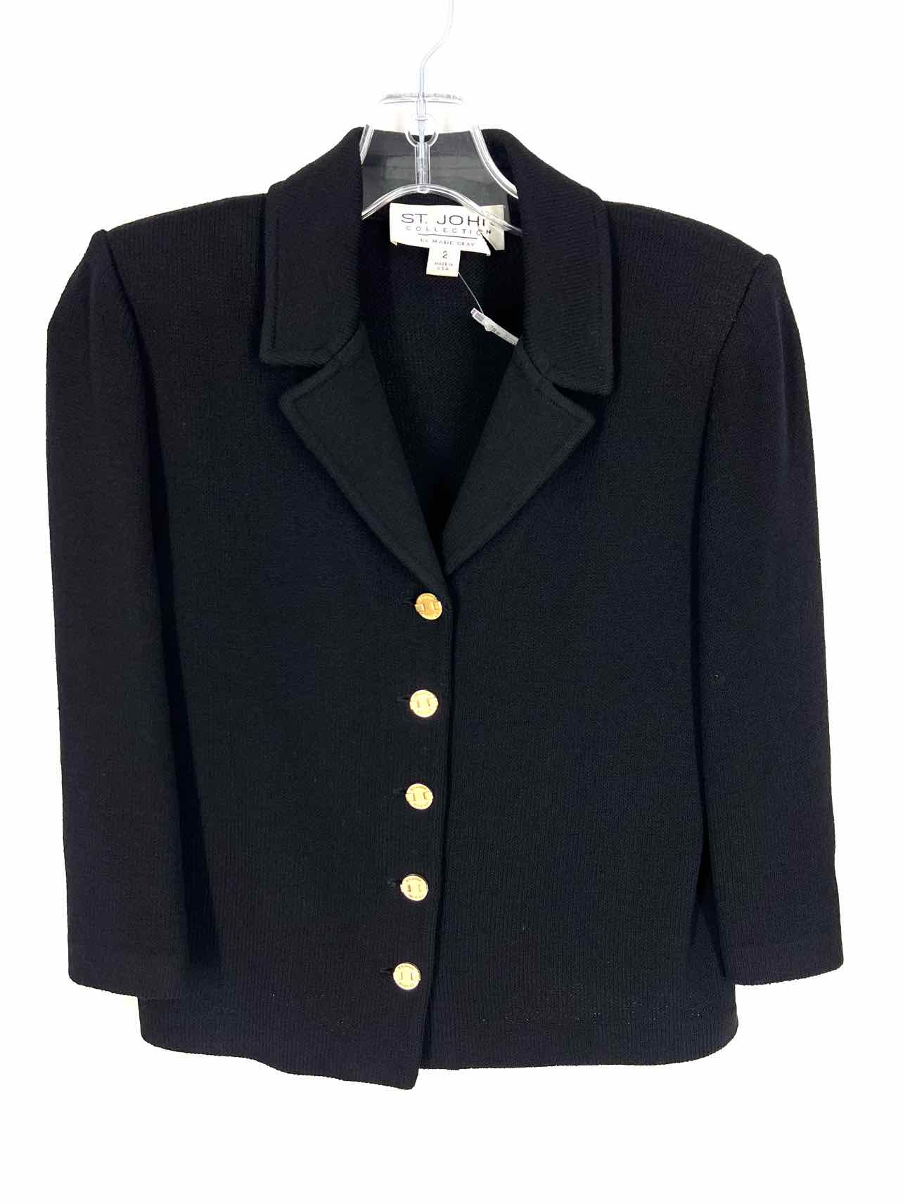 St. John Collection Size 2 Black/Gold Button(s) Knit Designer Blazer