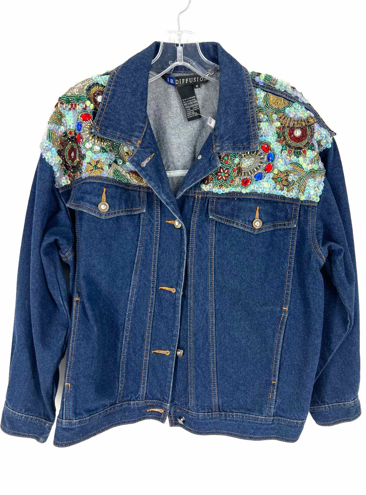 I.B. Diffusion Size 12 Denim/Multi Beaded Jeweled Vintage Designer Jacket