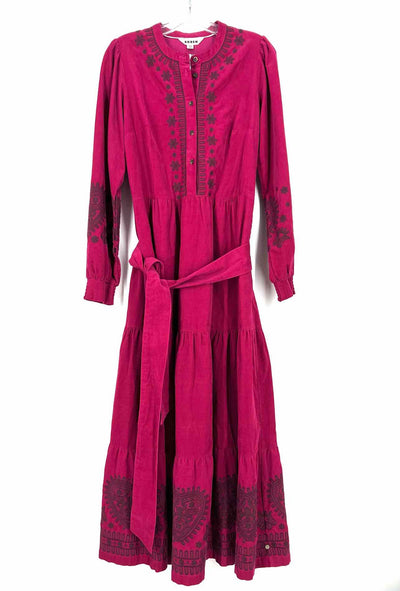 Boden Size 8Reg Magenta/Wine Floral Embroidered Designer Dress Maxi
