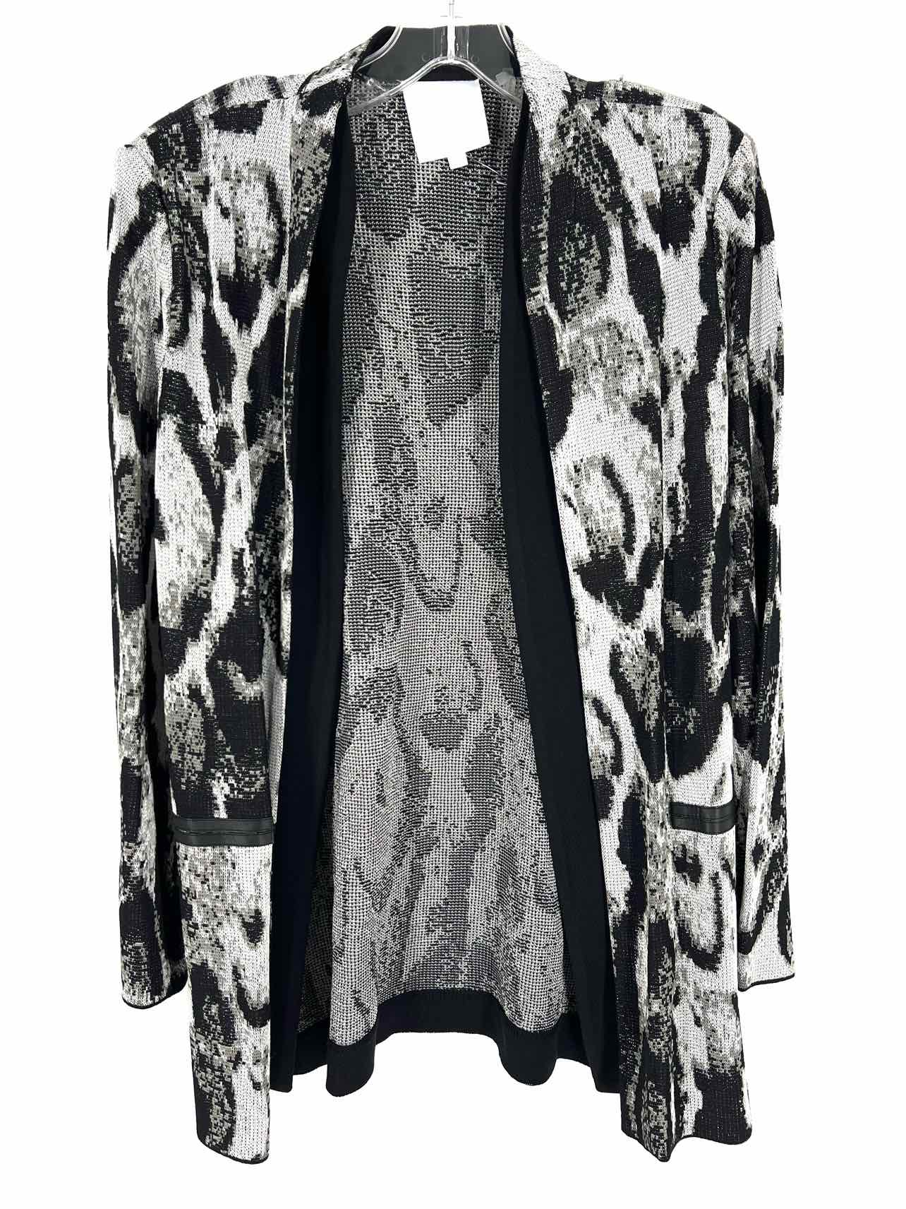 Misook Size XS Gray/Black Animal Print Knit Designer Cardigan