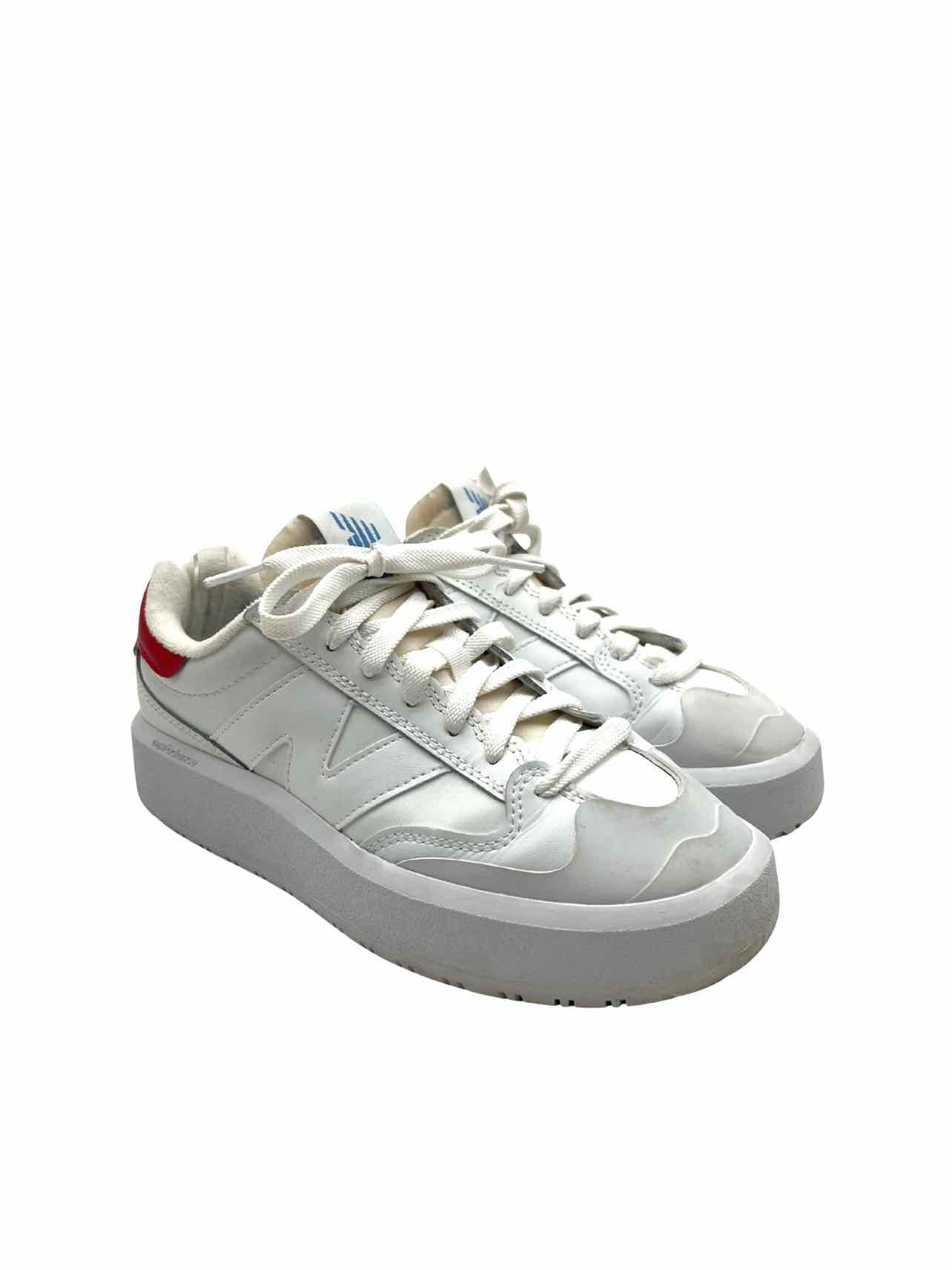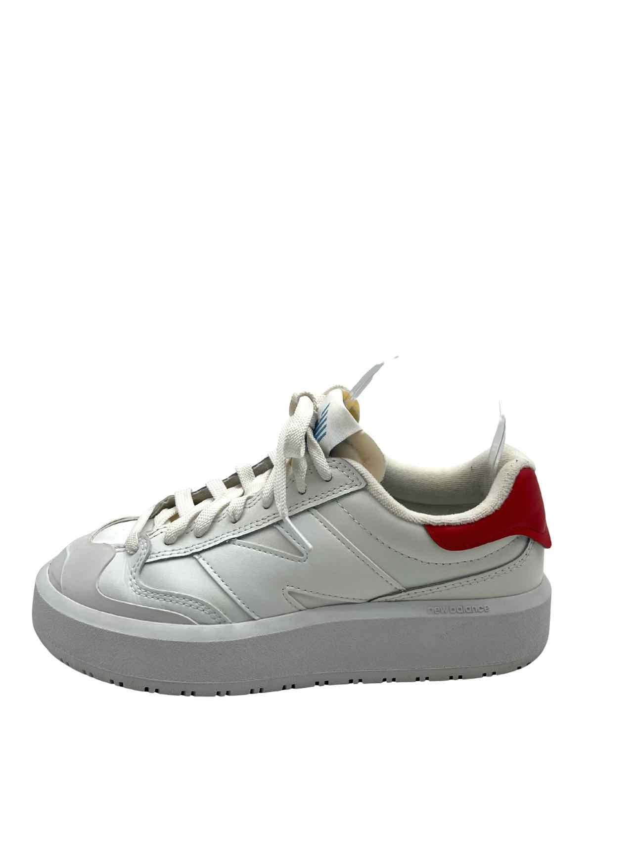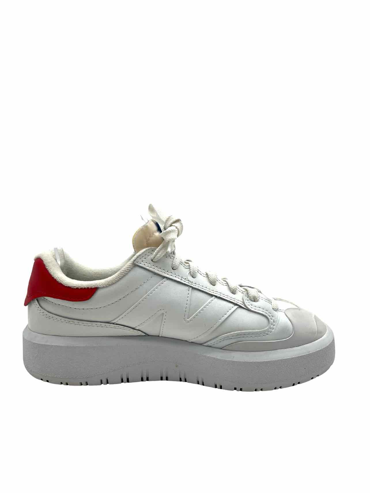 New Balance Size 7.5 White/Red Lace-Up Leather Shoes Sneakers