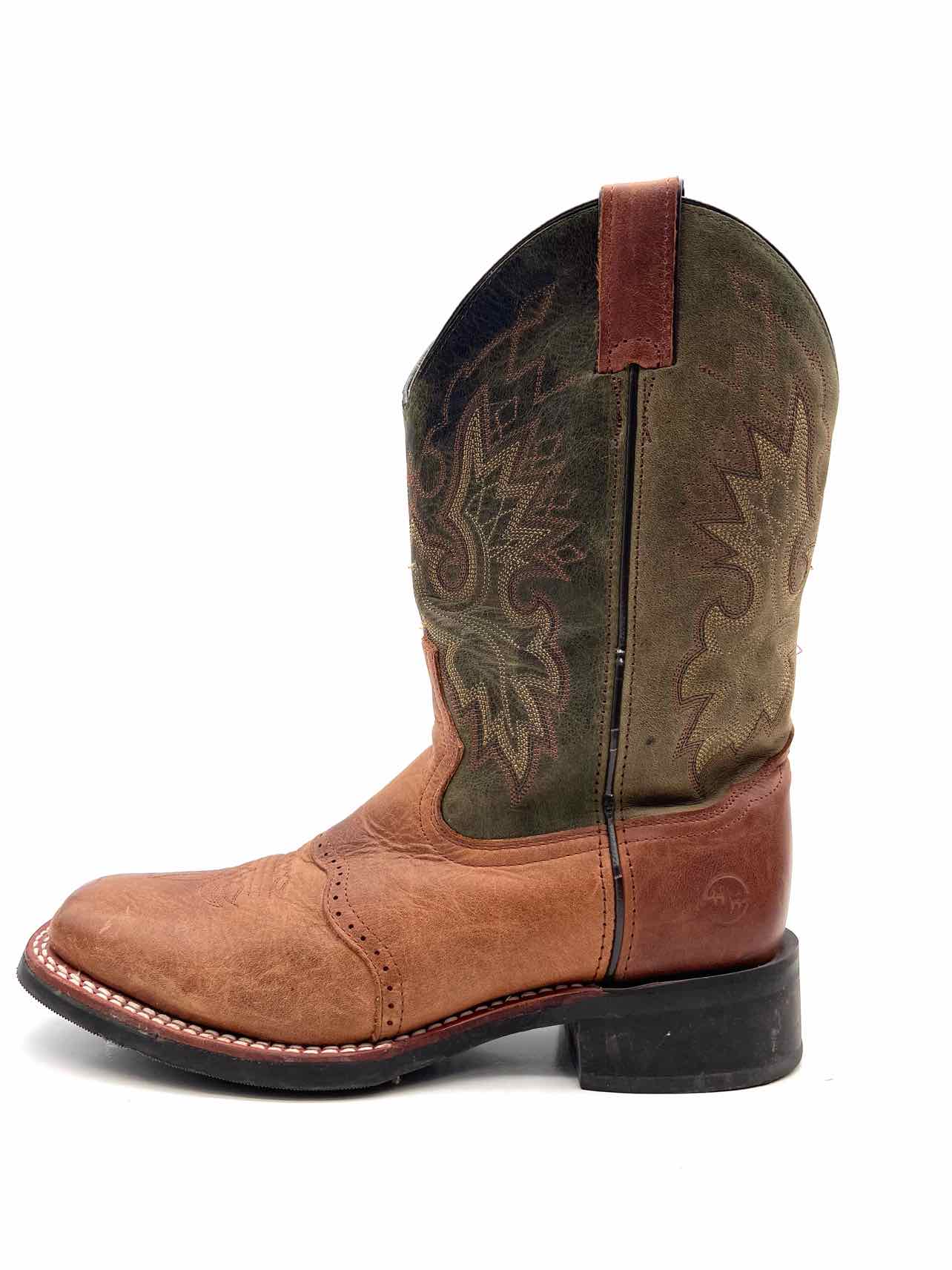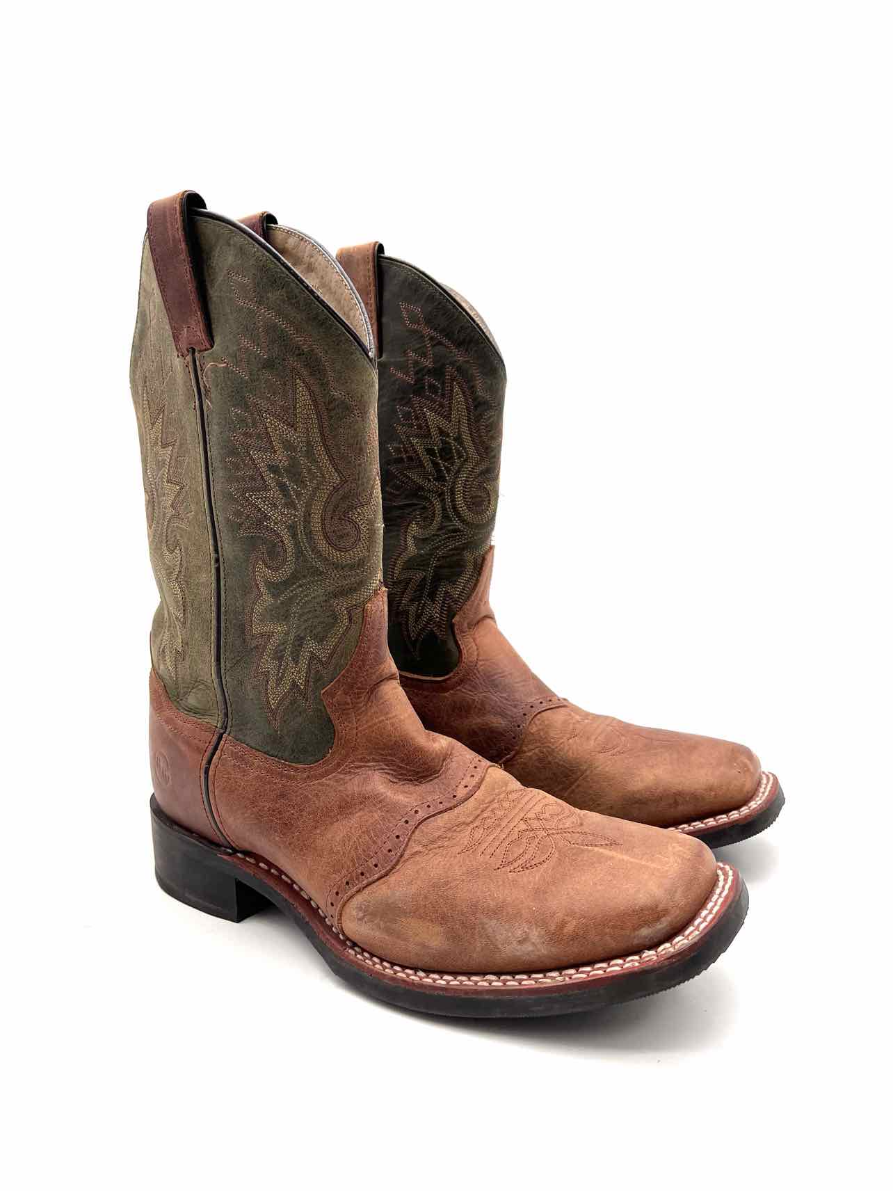 Double H Size 8.5 Olive/Brown Embroidered Leather Men's Shoes Boots- Men's