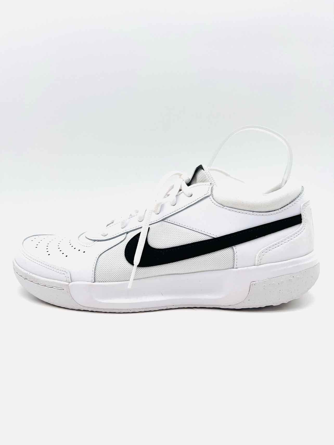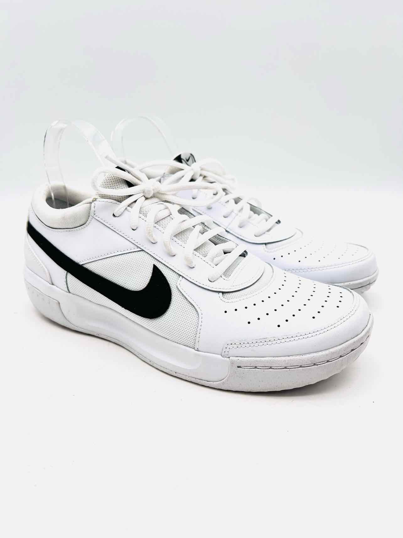 Nike Size 9.5 White/Black Lace-Up Leather Men's Shoes Sneakers- Men's