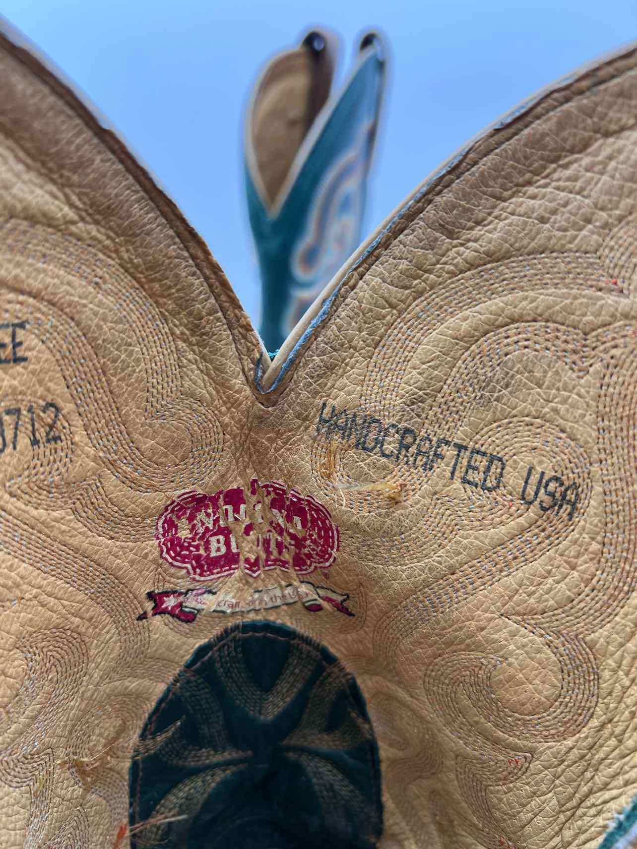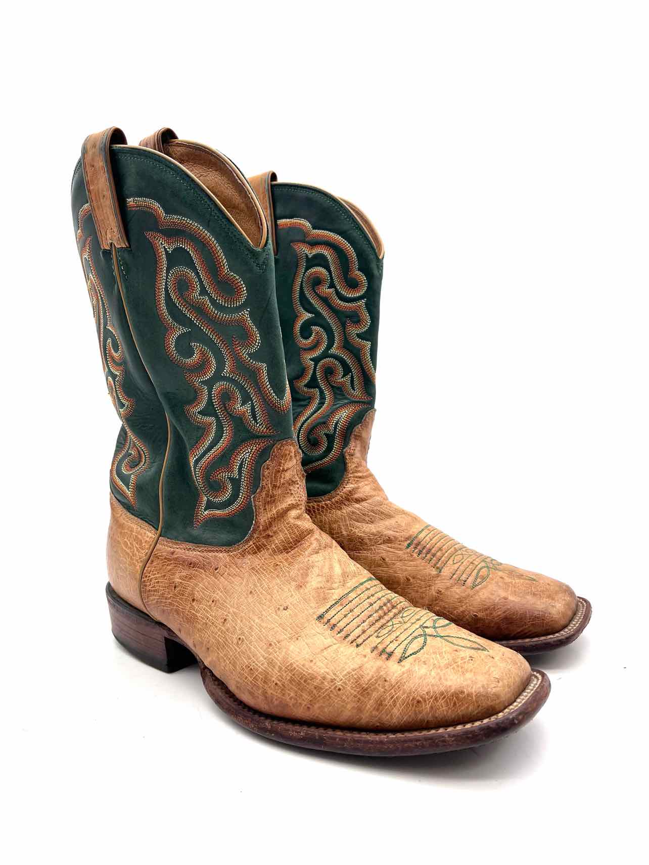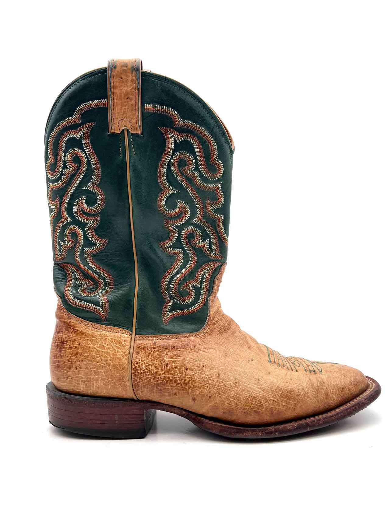 nocona Size 9.5 Brown/Green Western Ostrich AS IS Men's Boots- Men's