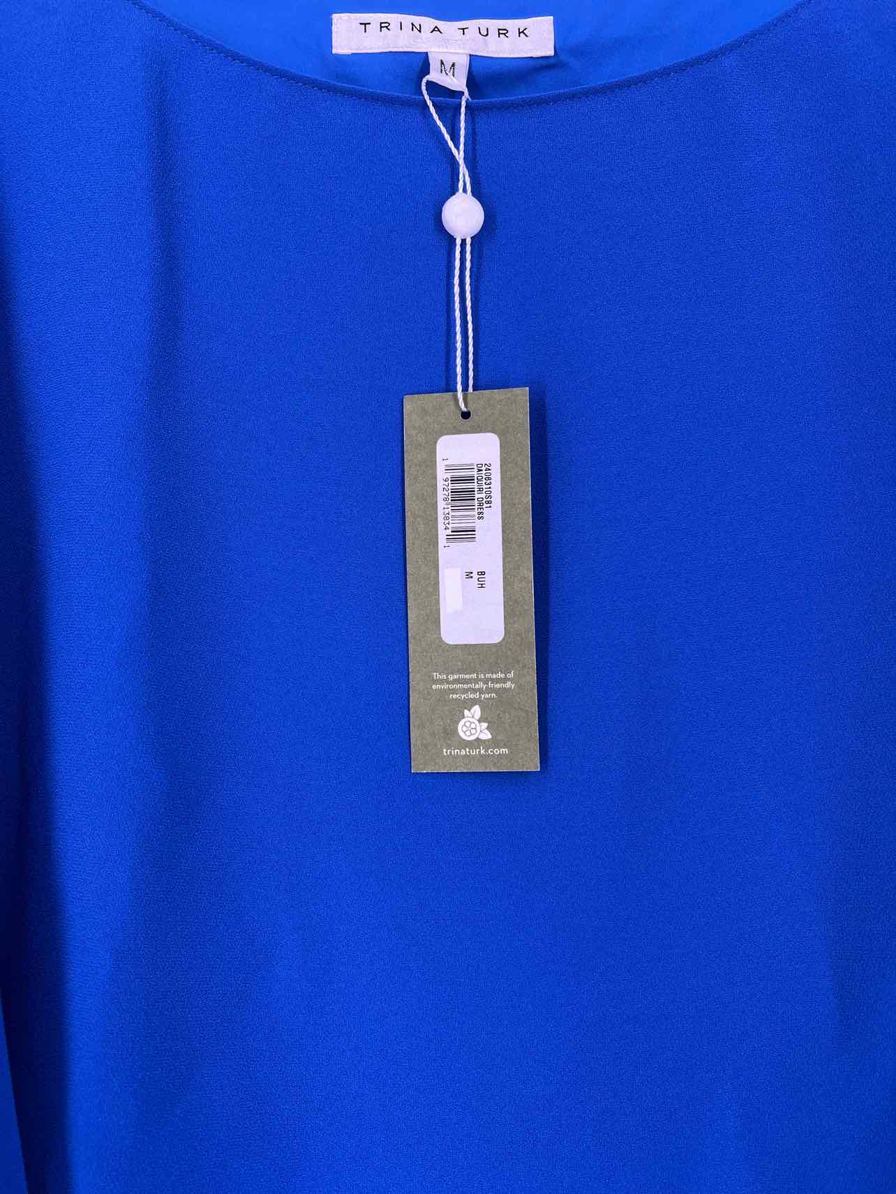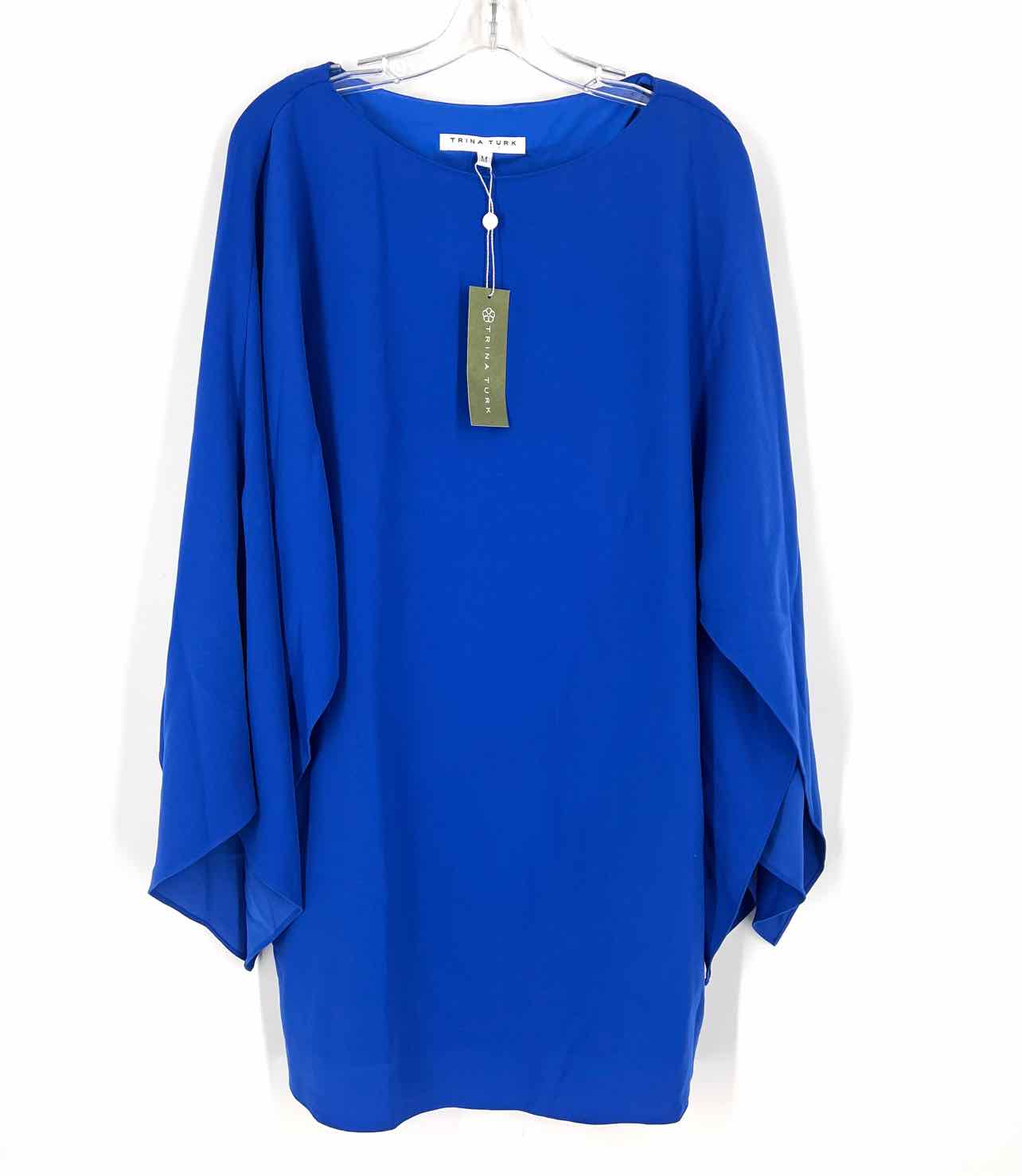 Trina Turk Size M Blue Solid Cape Sleeve NEW Designer Dress