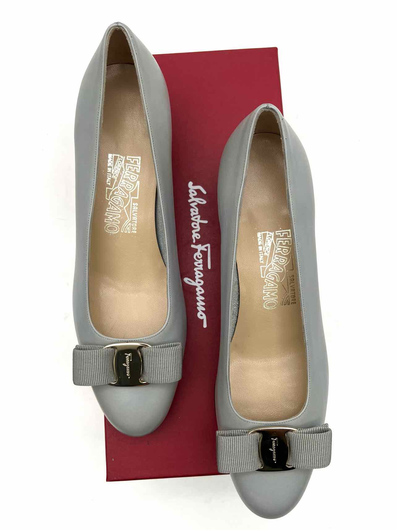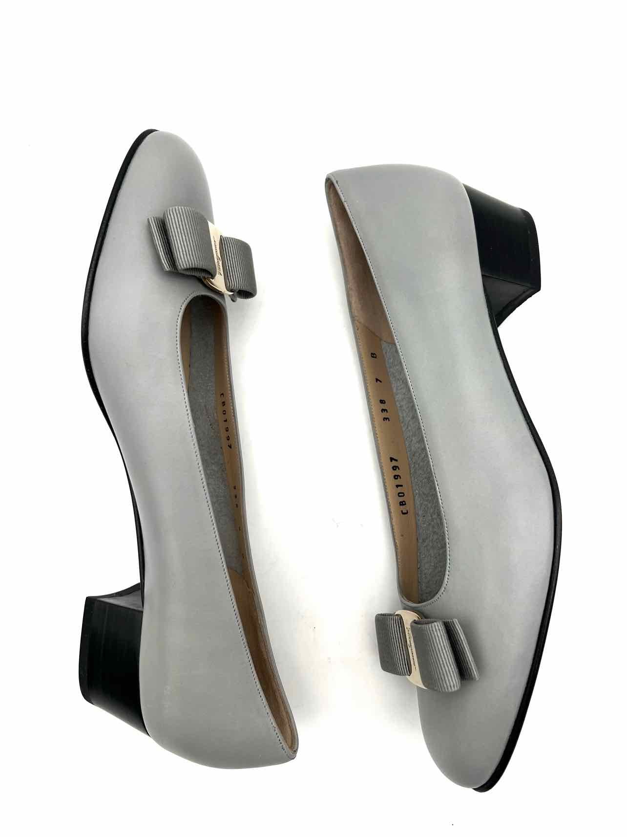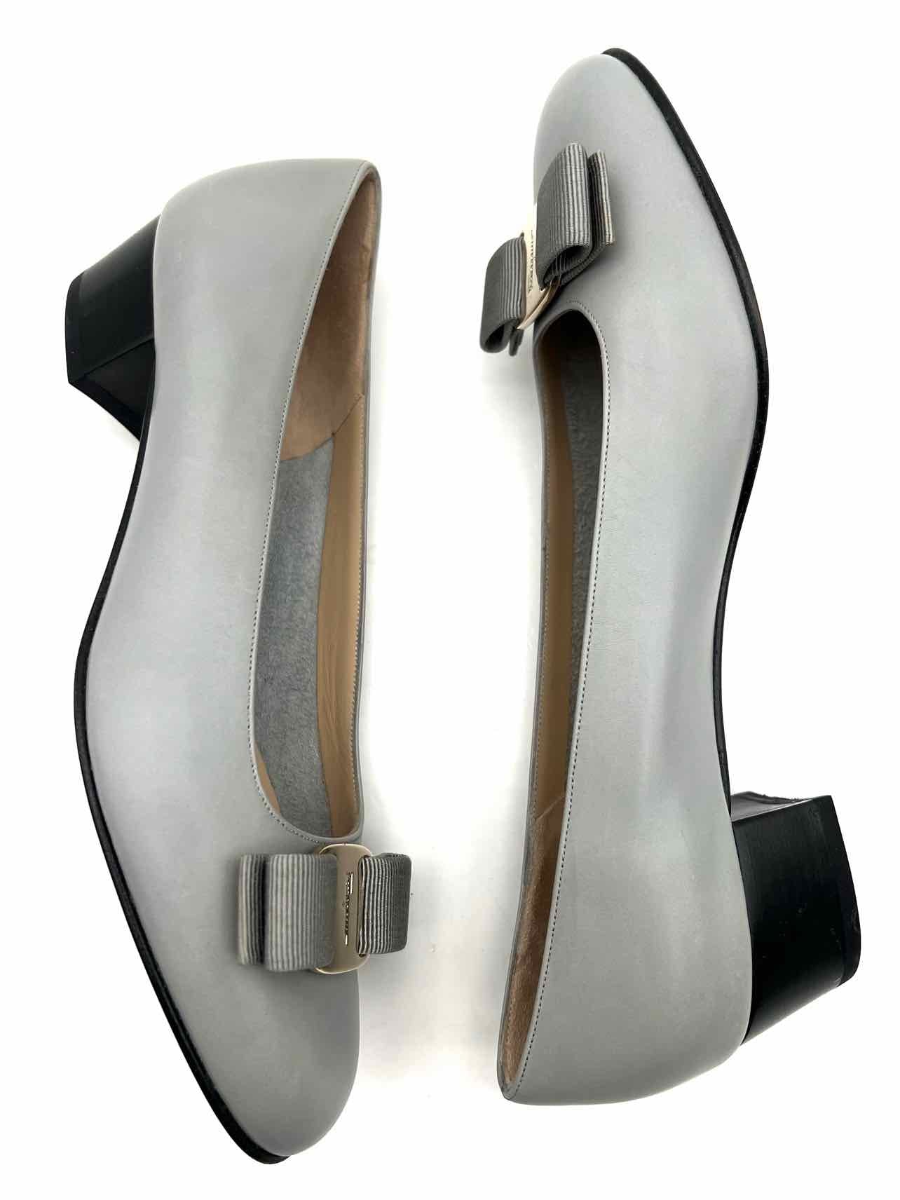 Salvatore Ferragamo Size 7 Gray Bow(s) Leather Shoes Heels