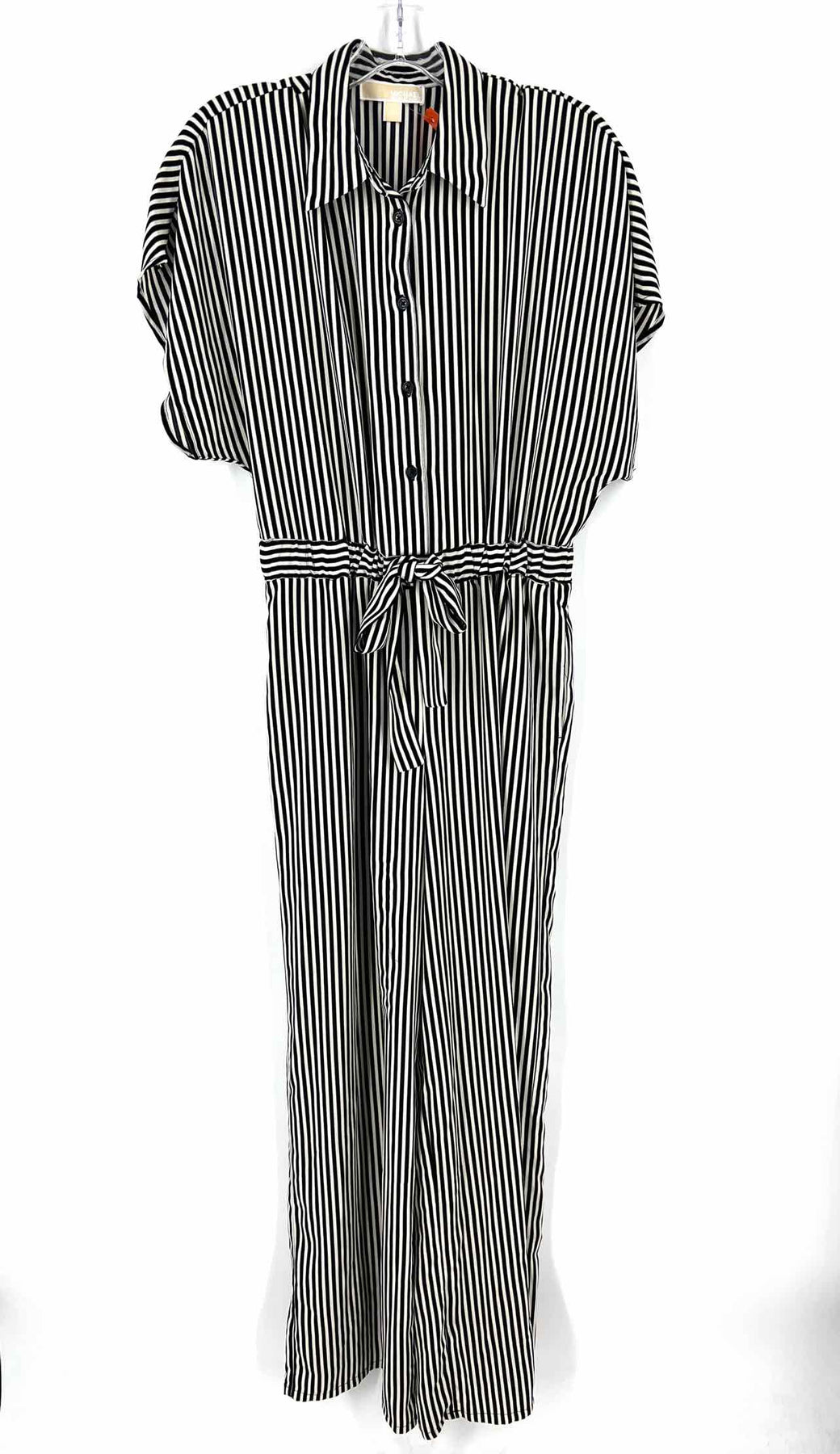 Michael Kors Size M Black/Bone Collared Stripe Dresses Jumpsuit