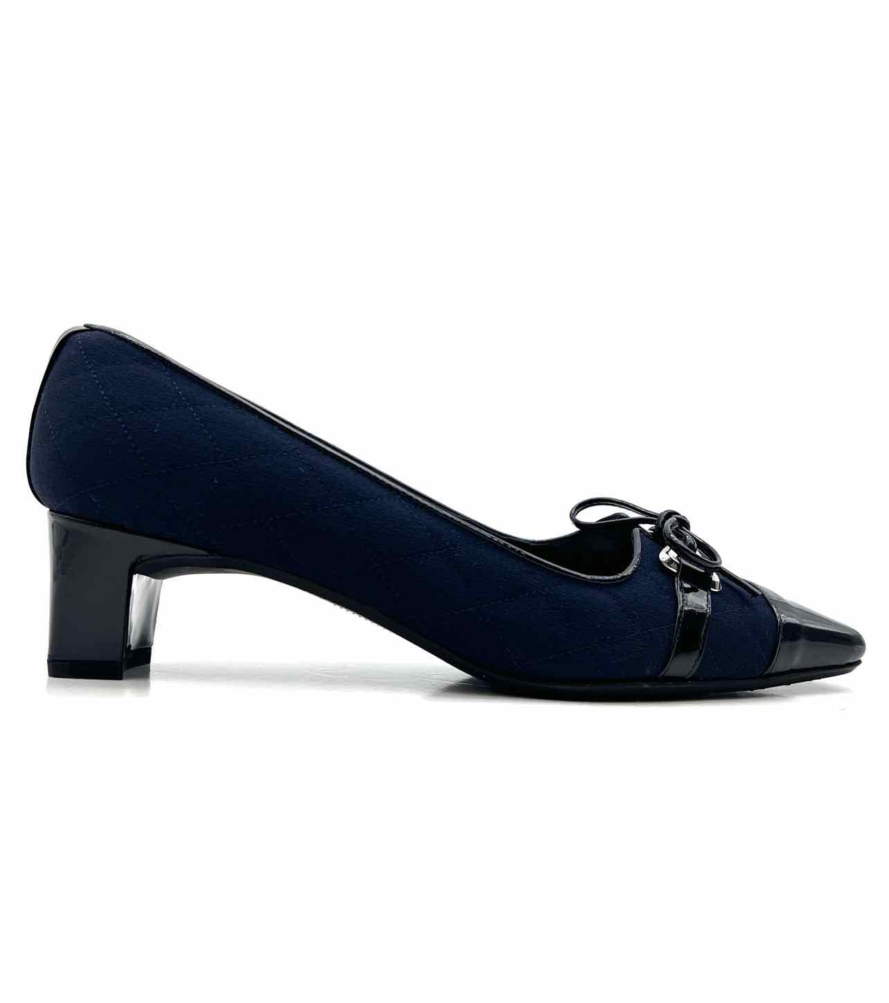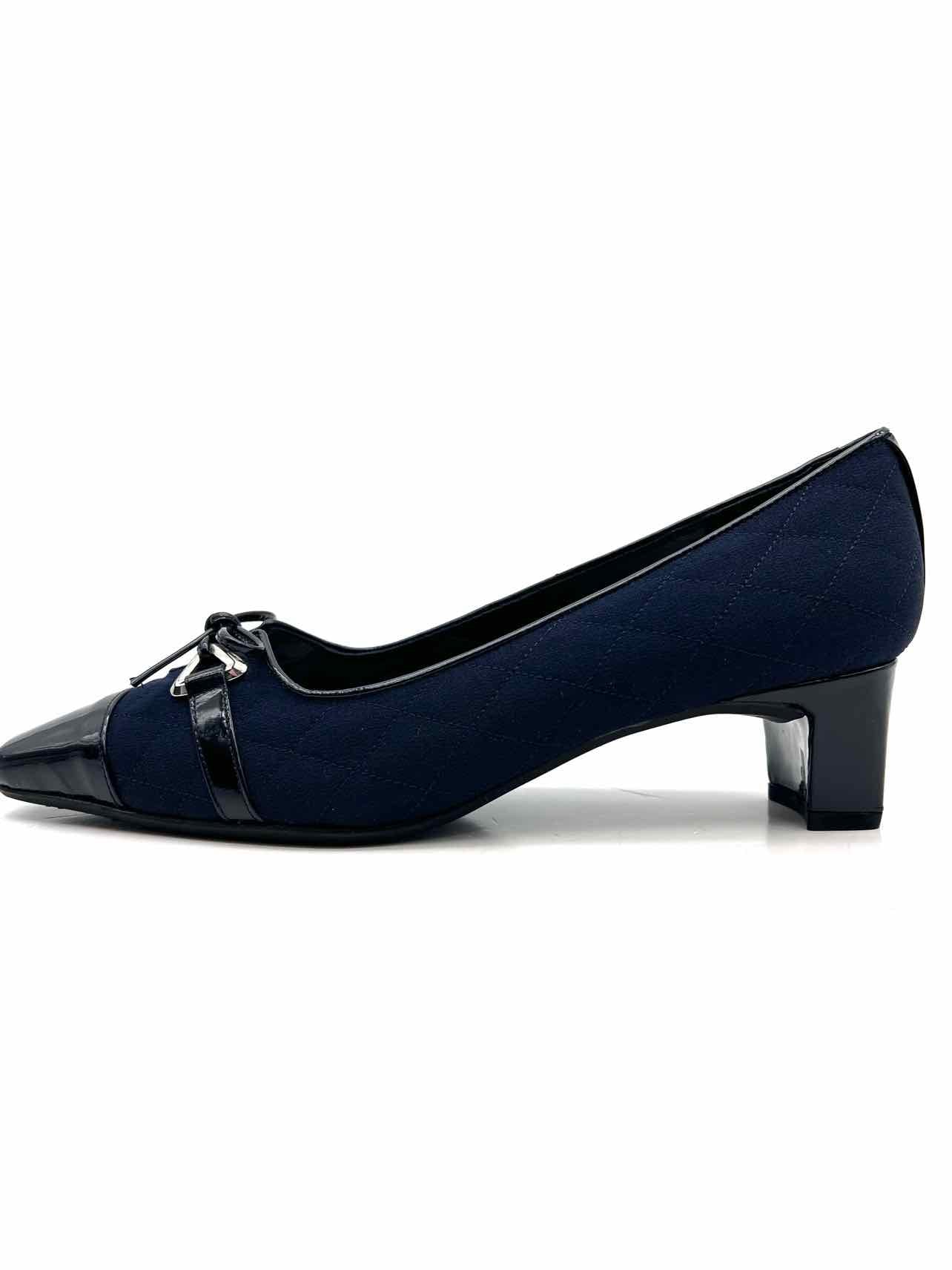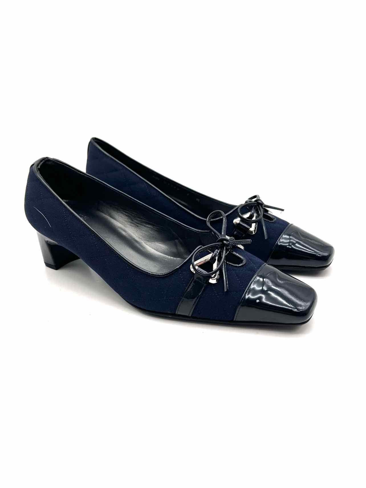 Stuart Weitzman Size 7 Navy/Black Cap Toe Quilted Shoes Heels