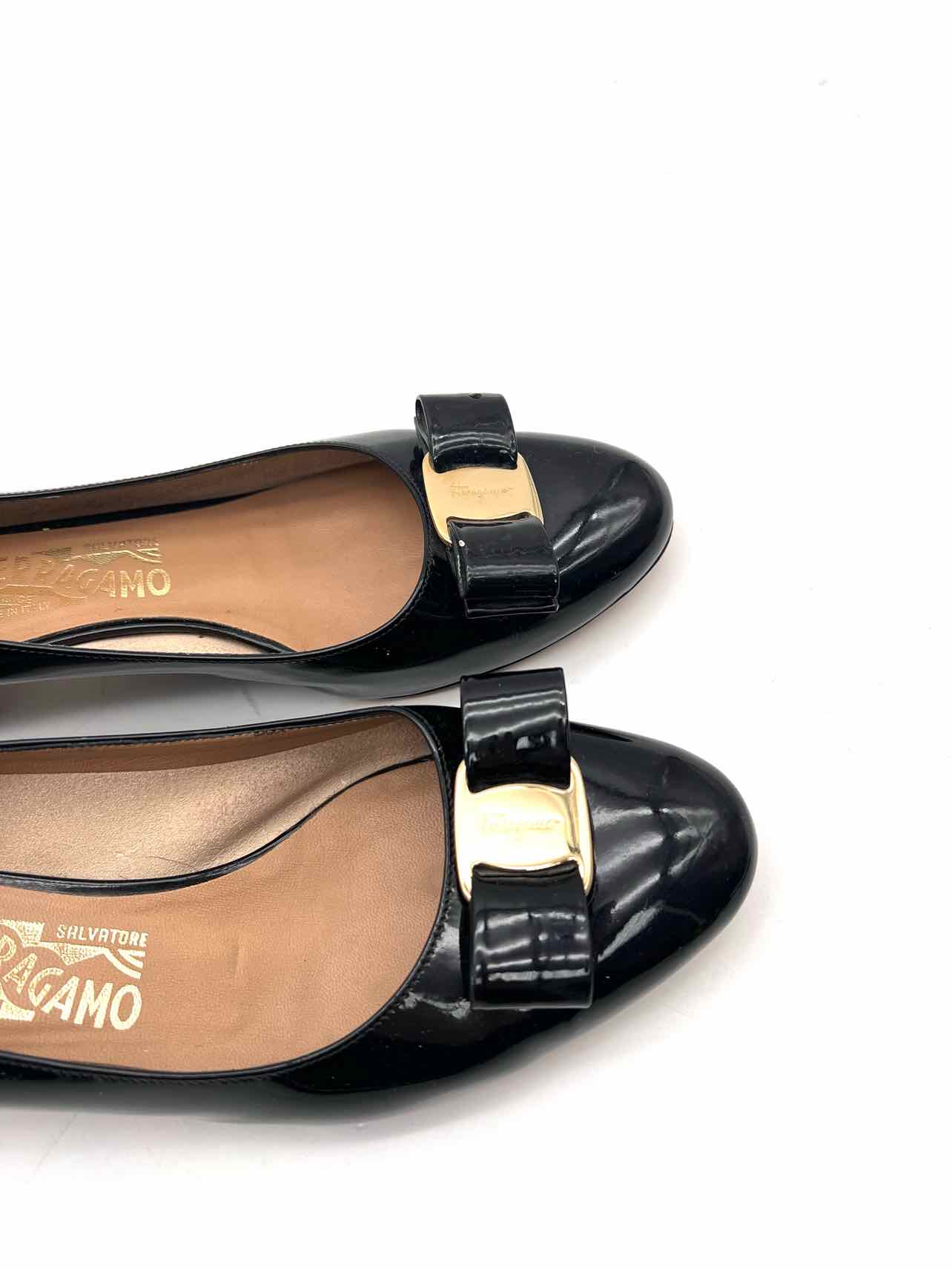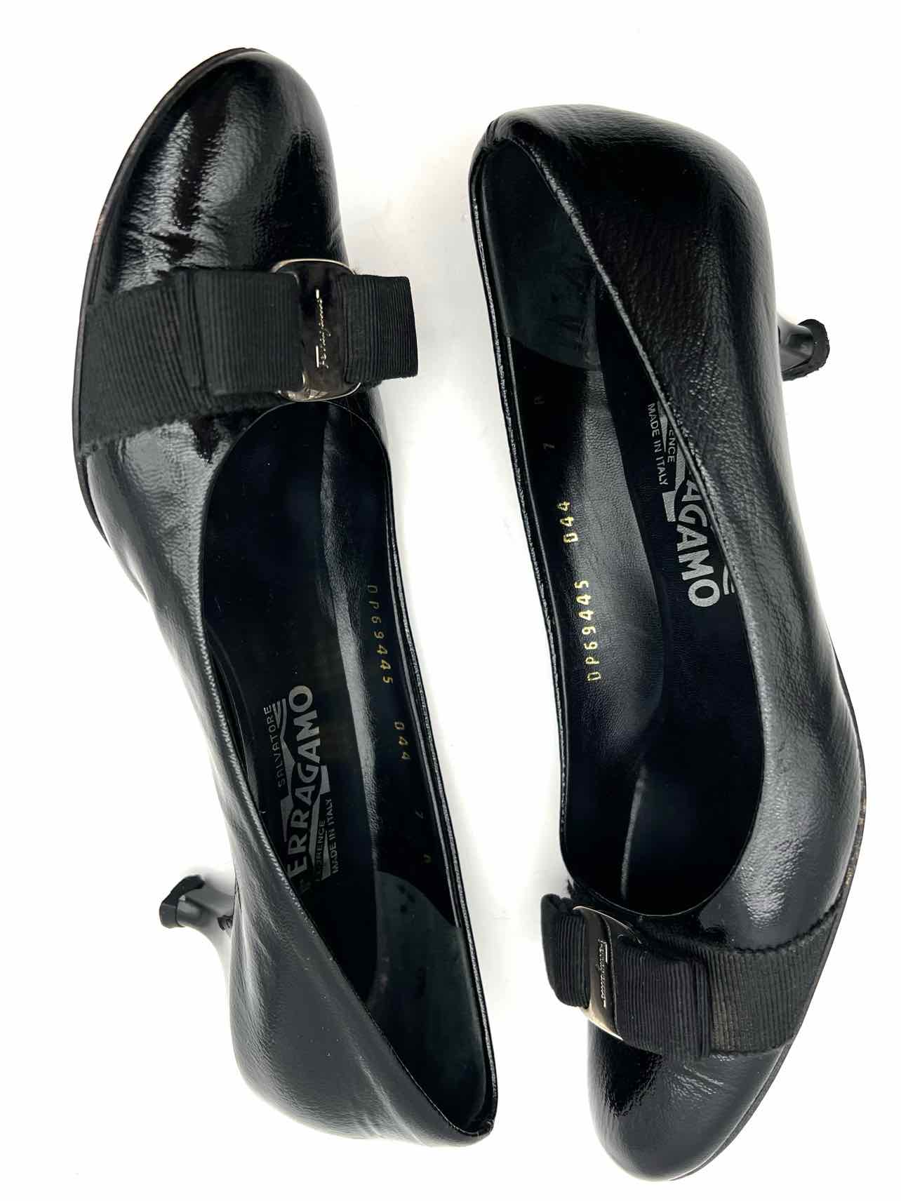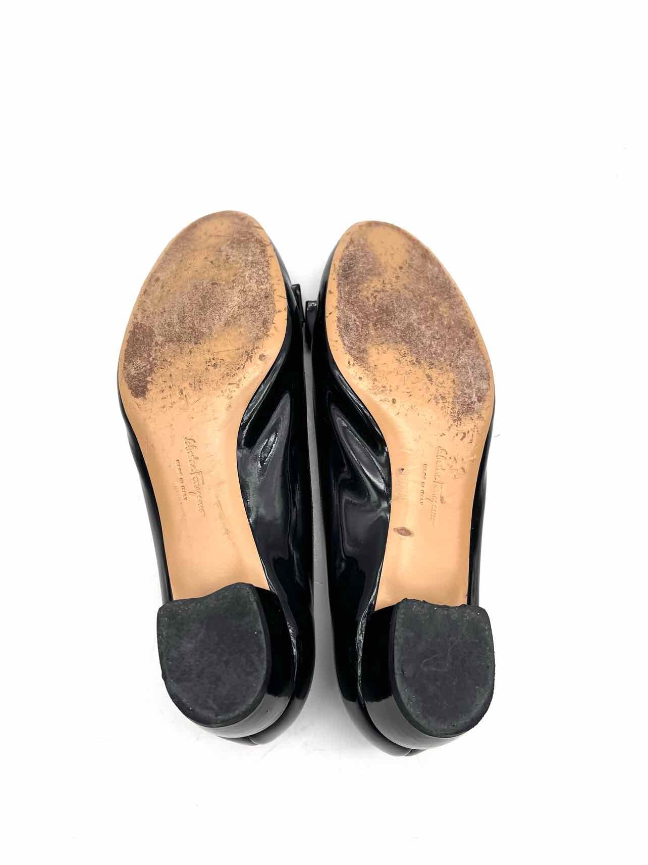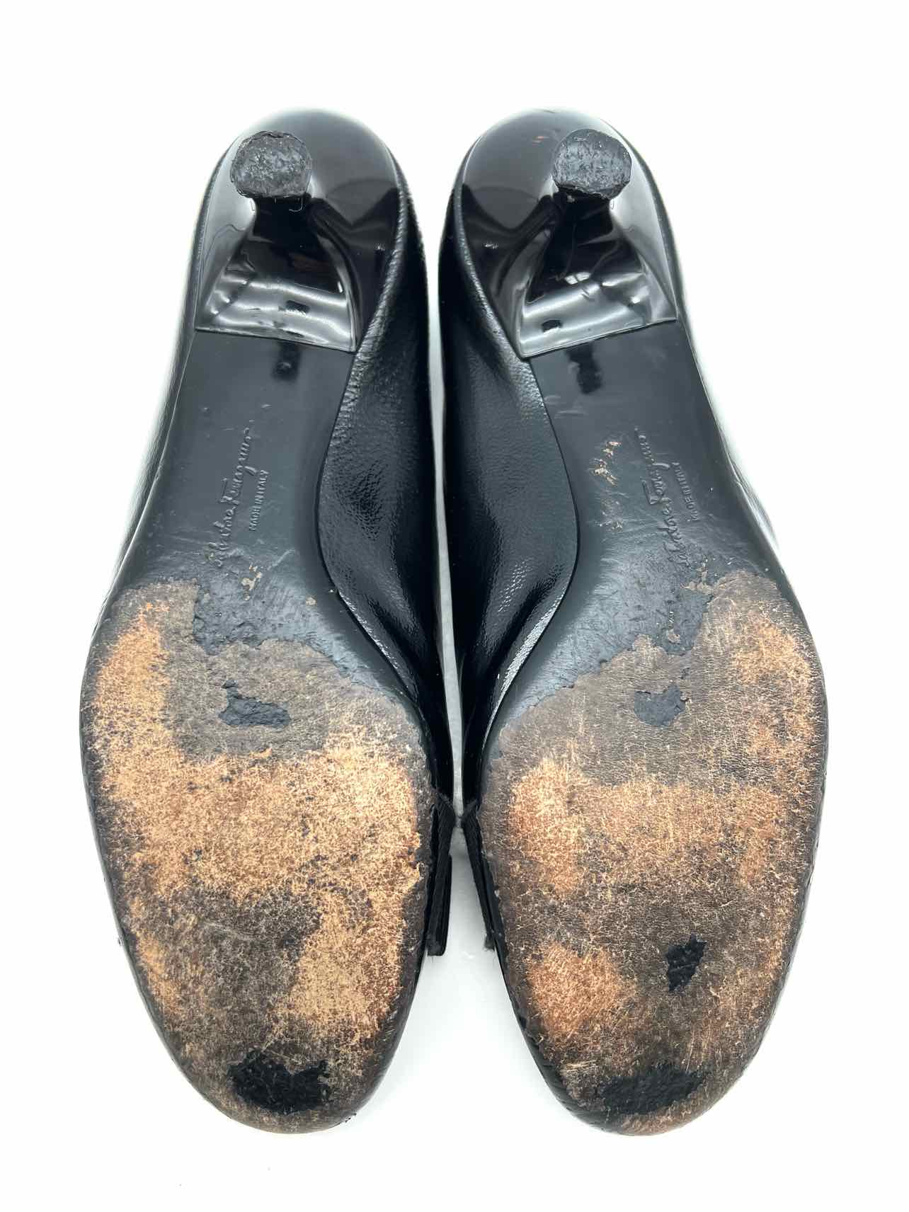 Salvatore Ferragamo Size 7 Black Bow(s) Patent Leather Shoes Heels