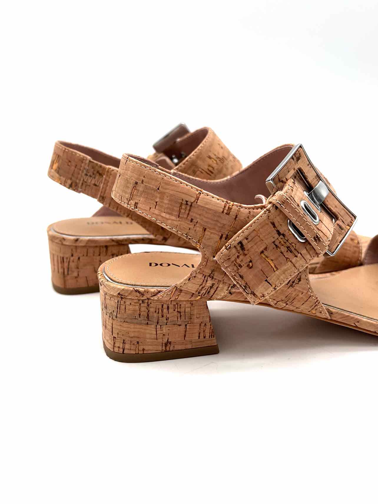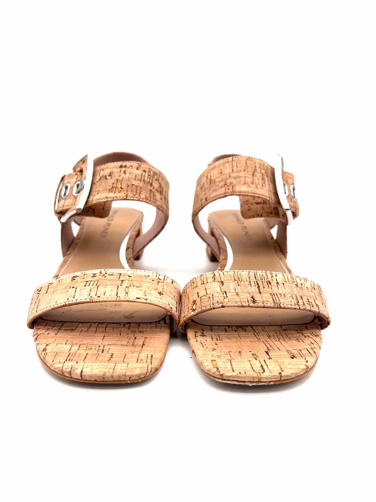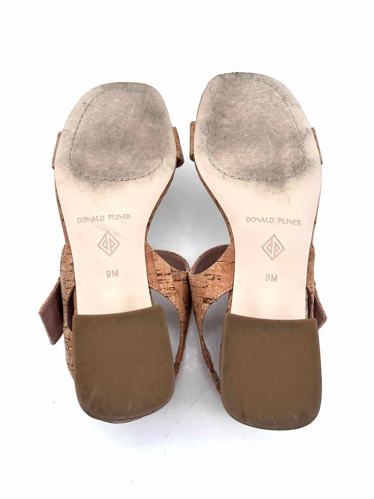 Donald Pliner Size 9 Tan/Black Ankle Strap Cork Shoes Sandals Heels