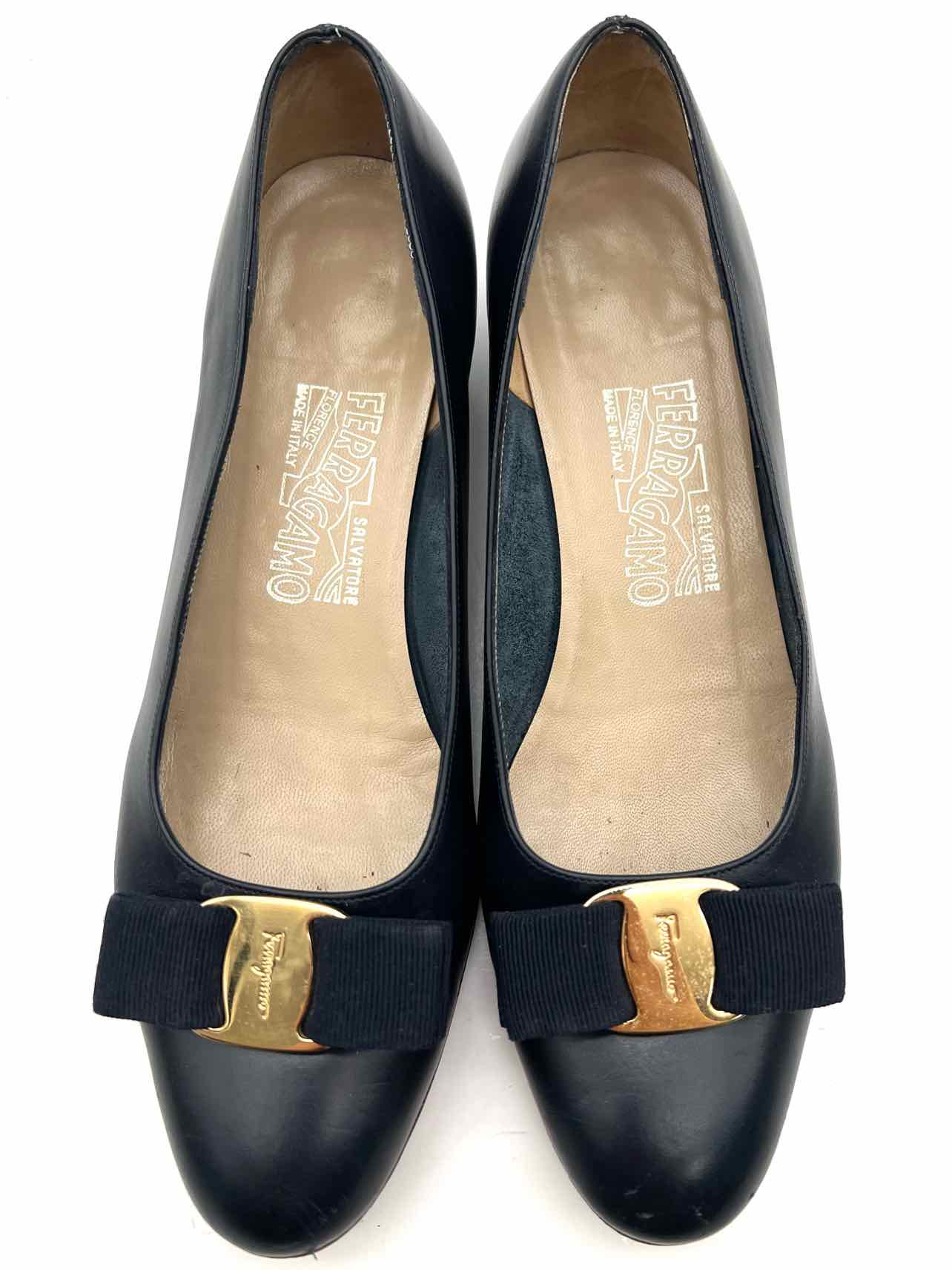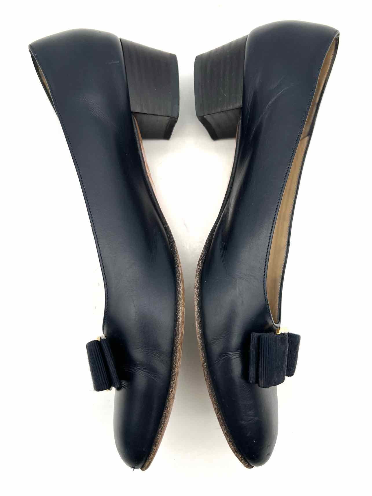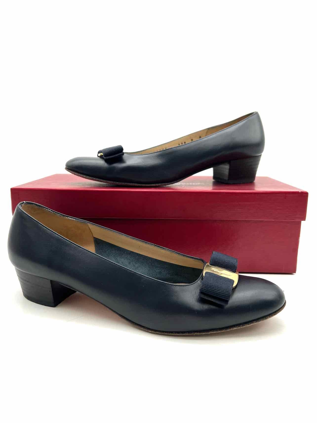 Salvatore Ferragamo Size 7 Navy Bow(s) Leather AS IS Shoes Heels