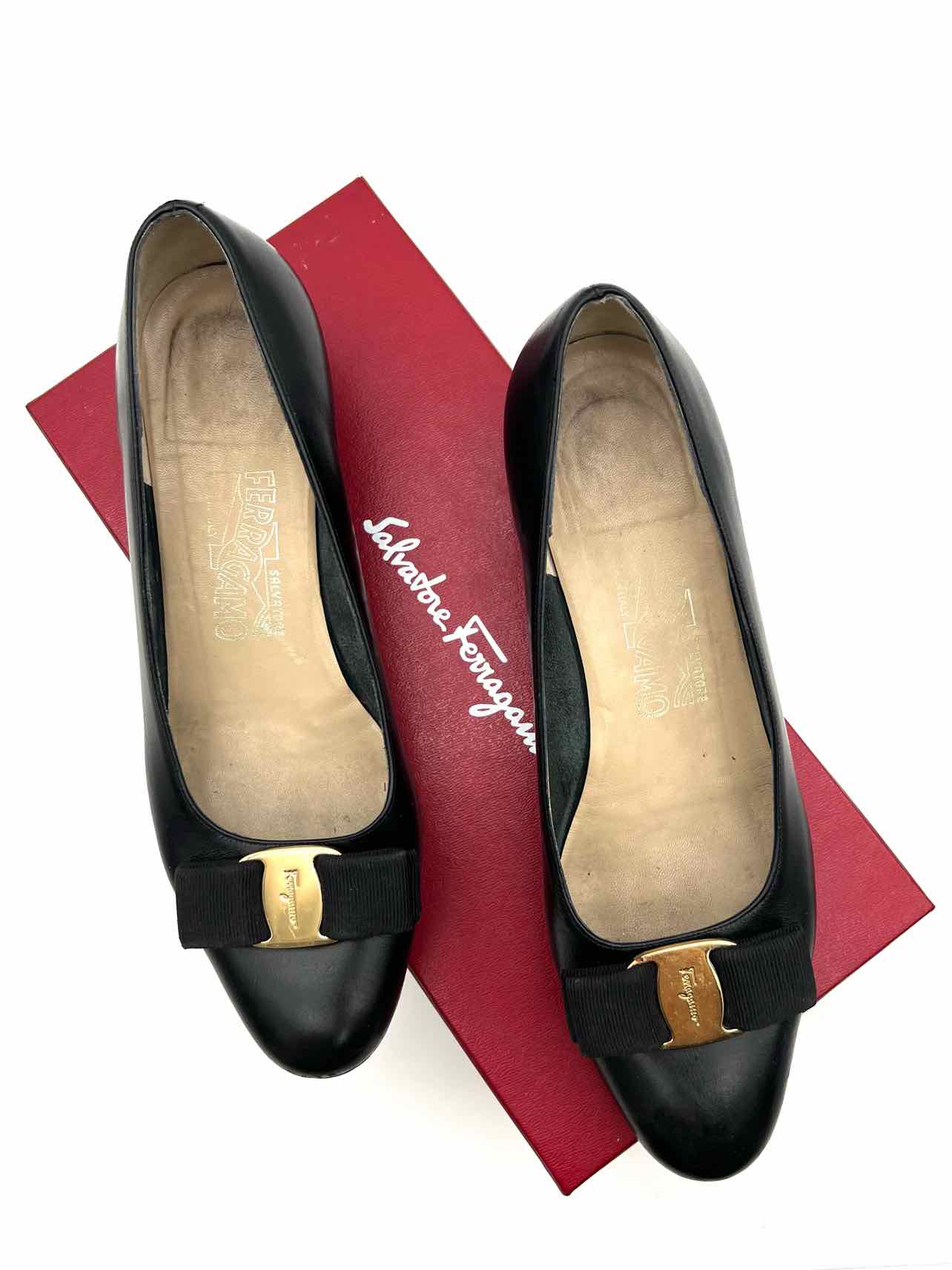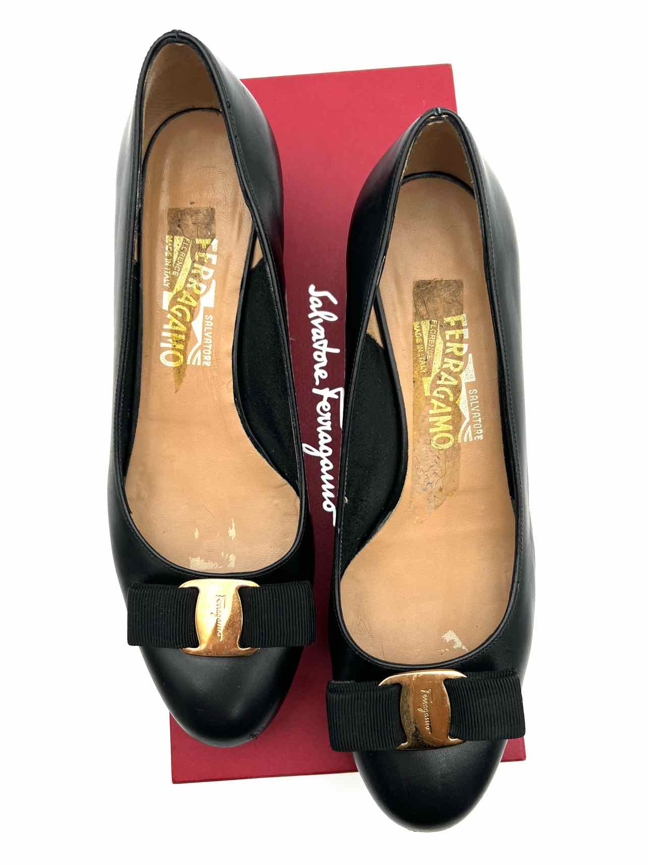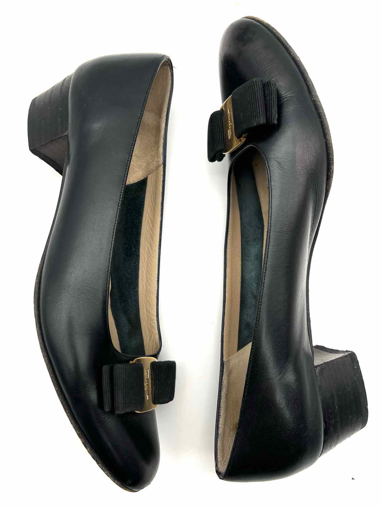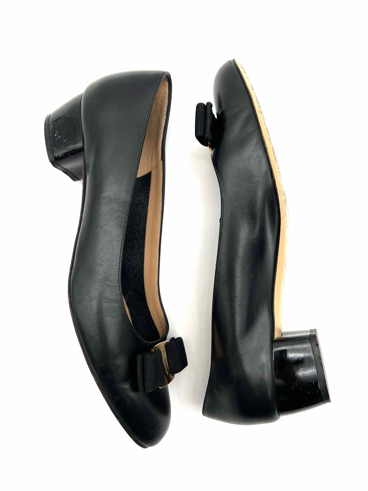 Salvatore Ferragamo Size 8 Black Bow(s) Leather AS IS Shoes Heels